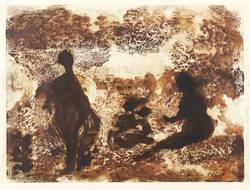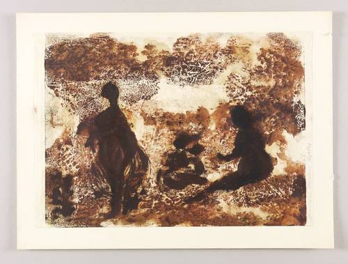 1966. Monotypie, in Sepiabraun, auf Maschinenpapier. – Originale Künstlergrafik, von Agathe Böttcher. – Unikat. – 29,7 x 39,5 cm (Darstellung), 29,7 x 42,0 cm (Blatt), 36 x 48 cm (Trägerkarton).