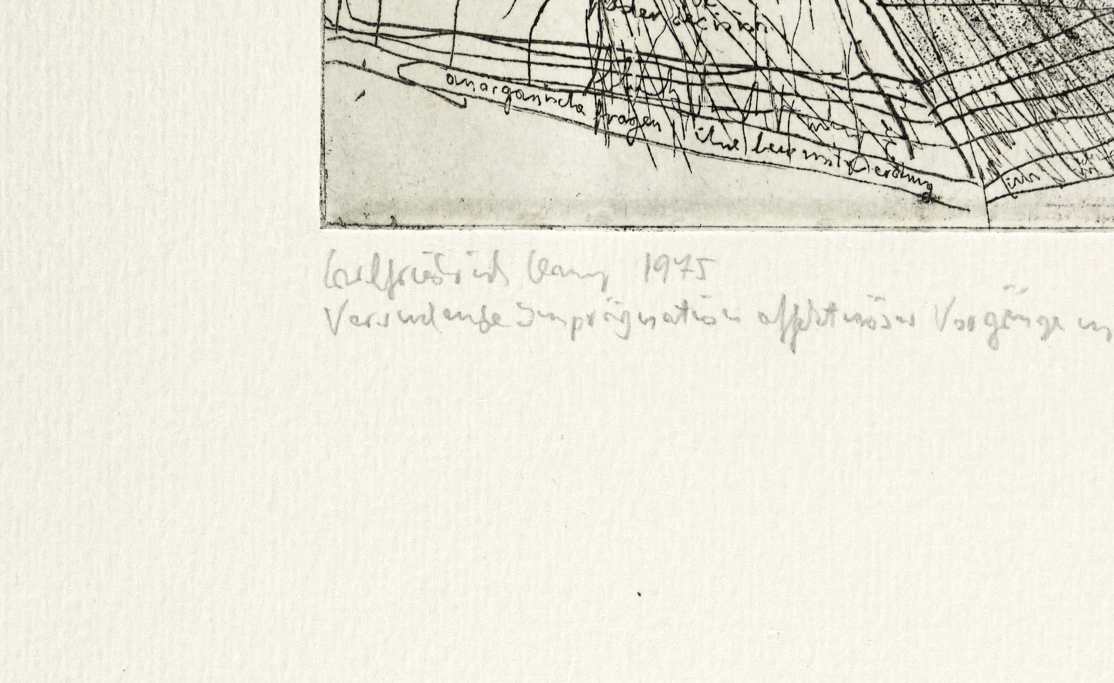 1975. Radierung / Strichätzung & Vernis mou, in Schwarz, auf Kupferdruckpapier. – Originale Künstlergrafik, von Carlfriedrich Claus. – Probedruck. – 19,1 x 12,5 cm (Darstellung / Platte), 45 x 34 cm (Blatt).
