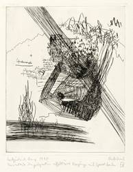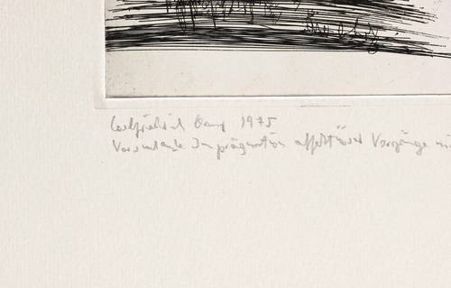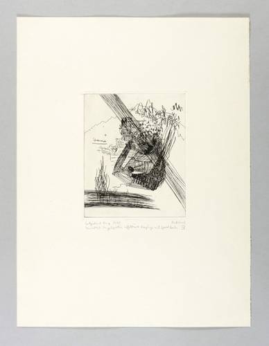 1975. Radierung / Strichätzung & Roulette, in Schwarz, auf Kupferdruckpapier. – Originale Künstlergrafik, von Carlfriedrich Claus. – Probedruck. – 17,8 x 14,6 cm (Darstellung / Platte), 45 x 34 cm (Blatt).