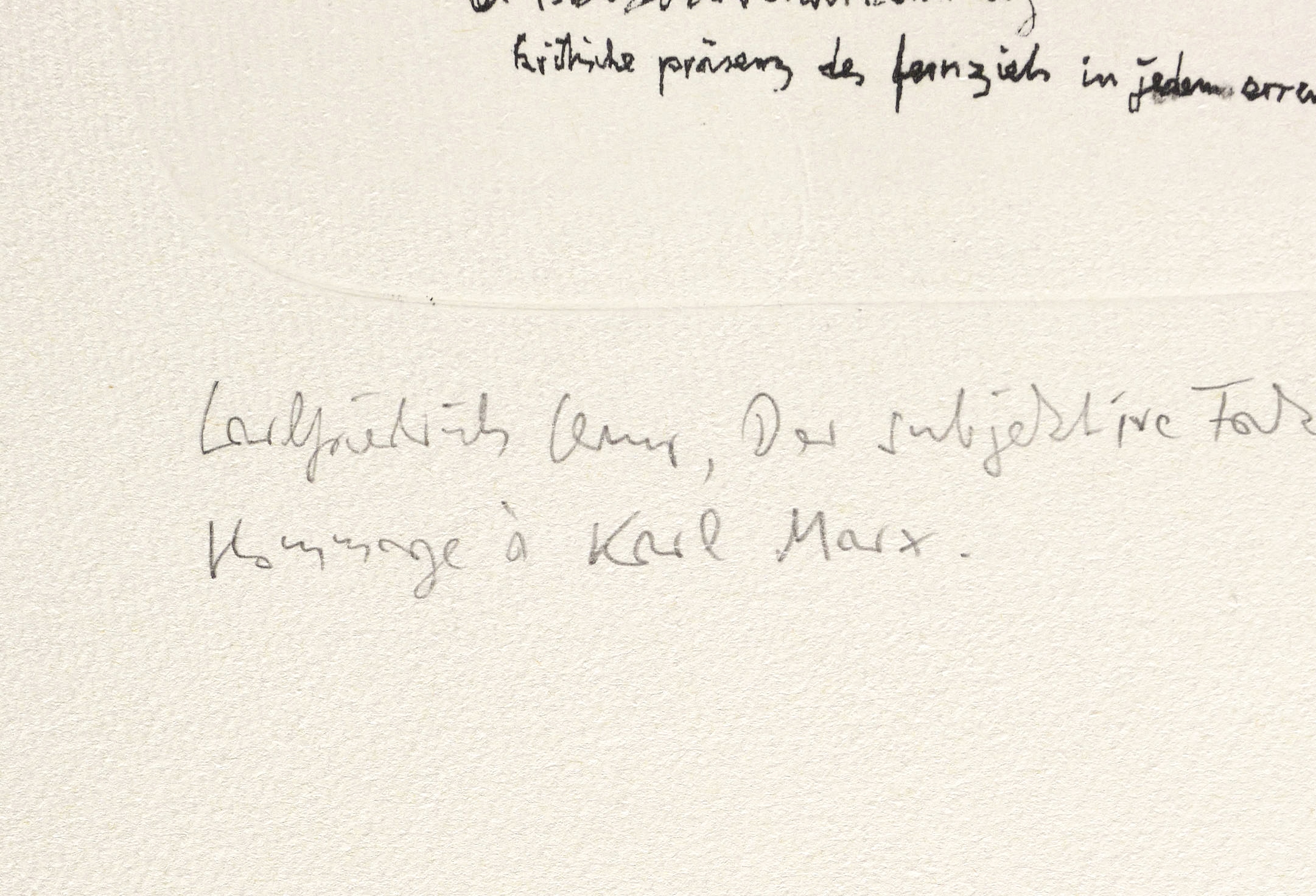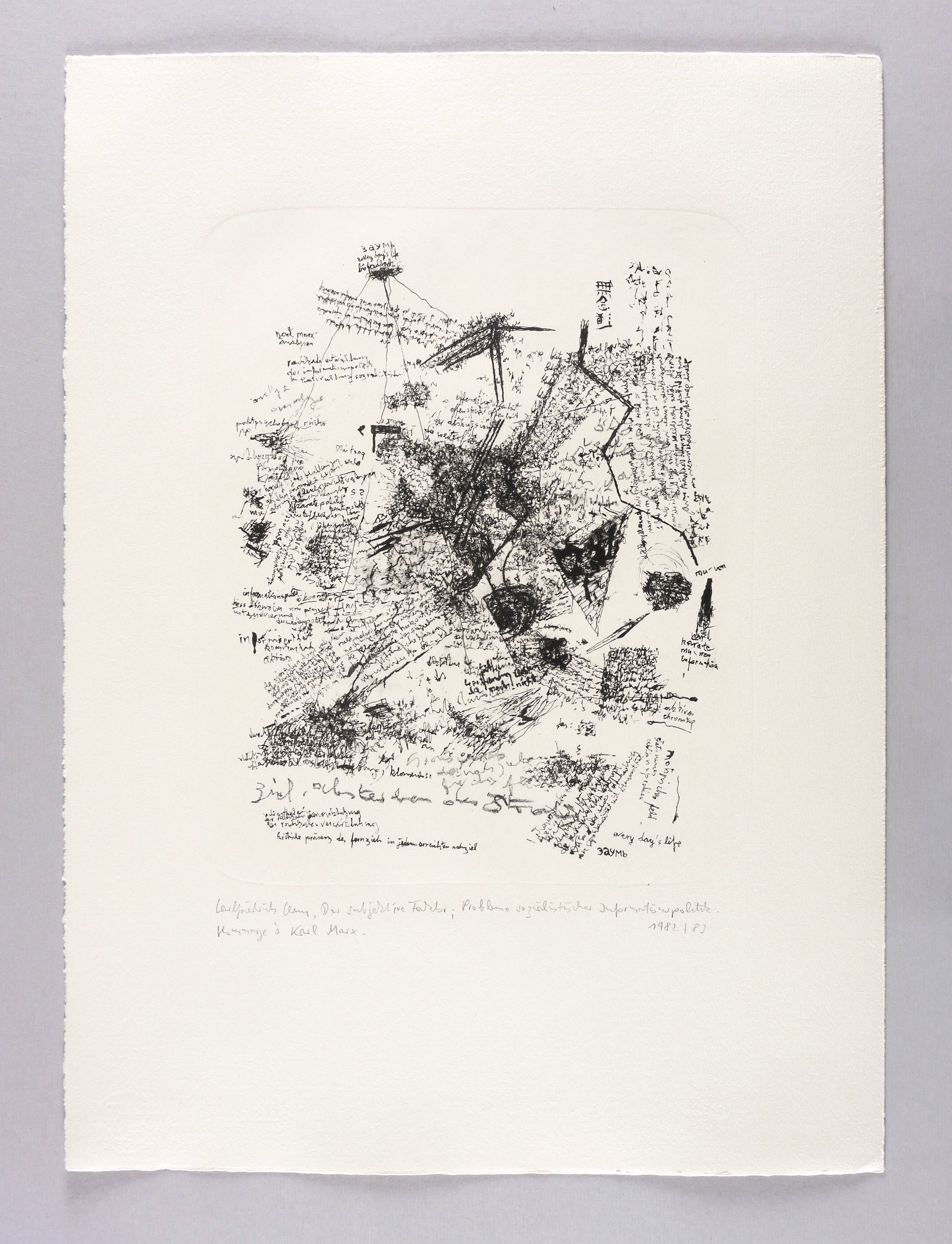 1982/1983. Lithografie / Federlithografie, in Schwarz, auf weichem chamois Hahnemühle. – Originale Künstlergrafik, von Carlfriedrich Claus. – Künstlerexemplar (e.a.). – 28,9 x 23,4 cm (Darstellung / Druckbild), 32,0 x 26,2 cm (Stein), 54 x 39 cm (Blatt).