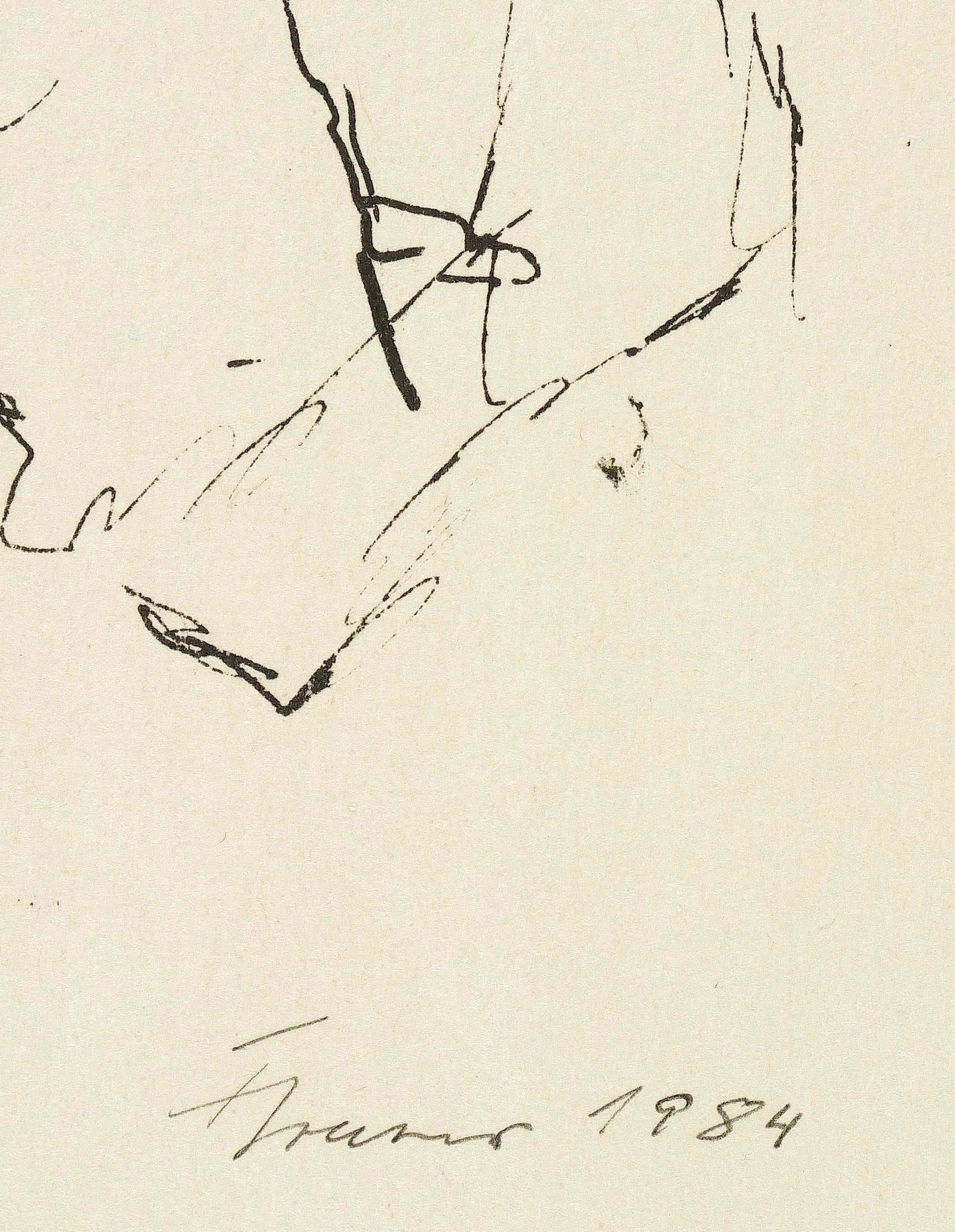 1984. Lithografie / Federlithografie, in Schwarz, auf hellchamois Velinkarton. – Originale Künstlergrafik, von Fritz Cremer. – 22,0 x 17,0 cm (Darstellung), 50 x 38 cm (Blatt).
