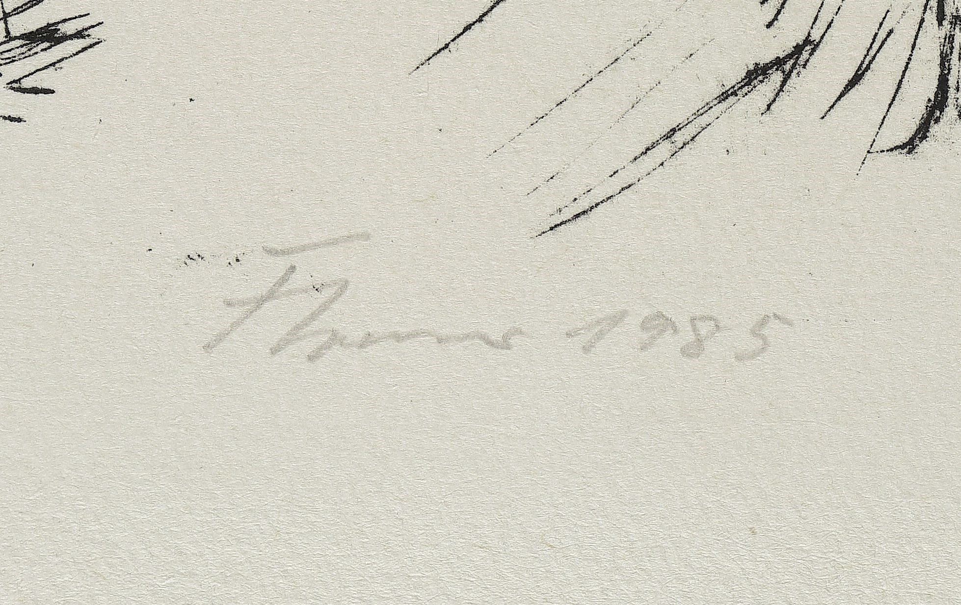 1985. Lithografie / Federlithografie, in Schwarz, auf Hahnemühle. – Originale Künstlergrafik, von Fritz Cremer. – 25,3 x 18,2 cm (Darstellung), 50 x 39 cm (Blatt).
