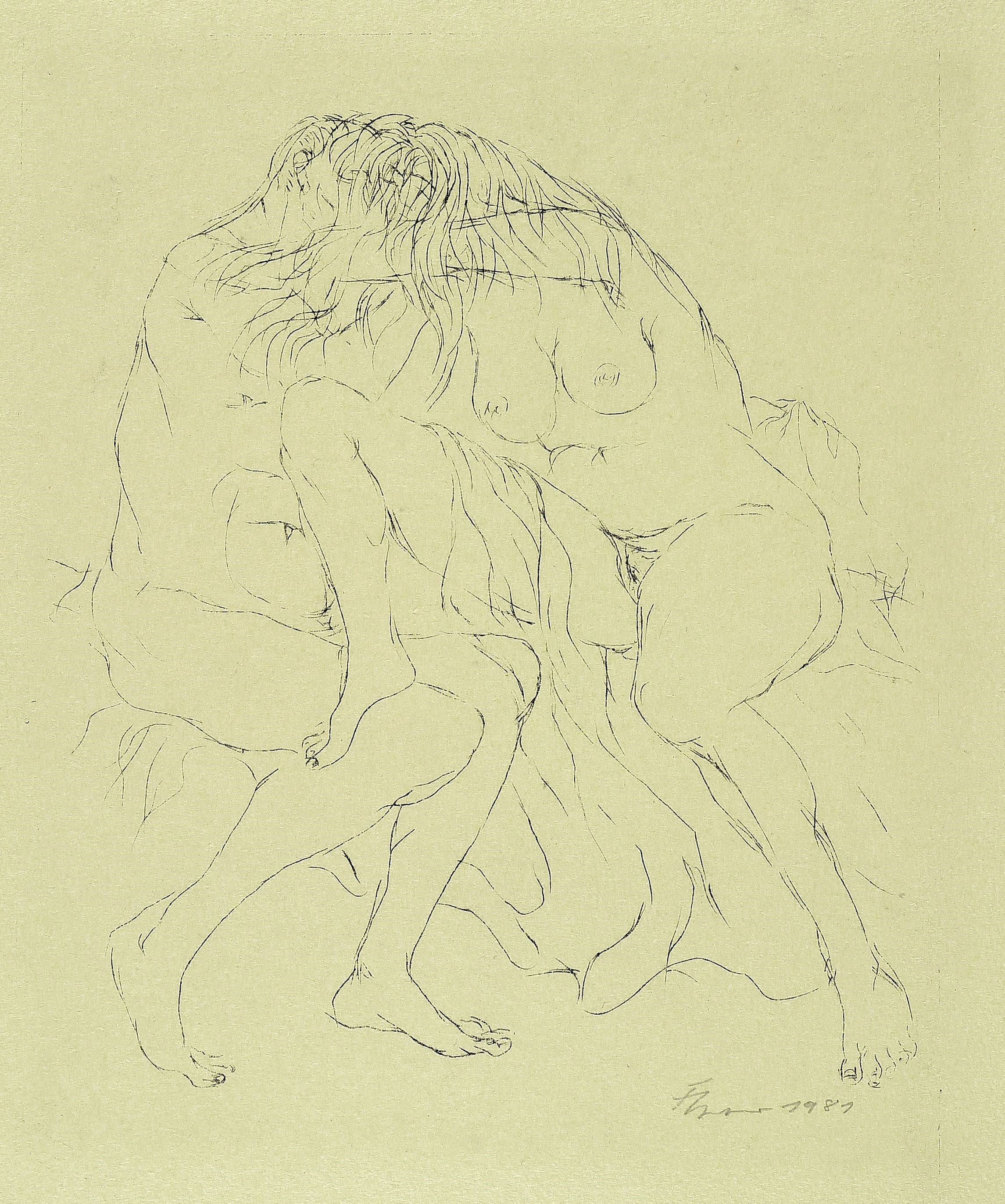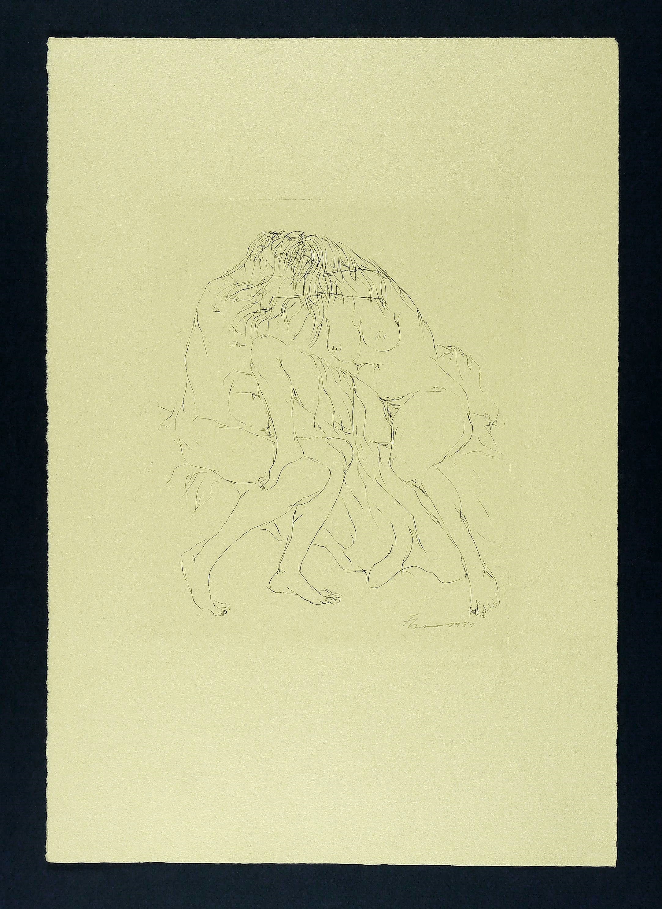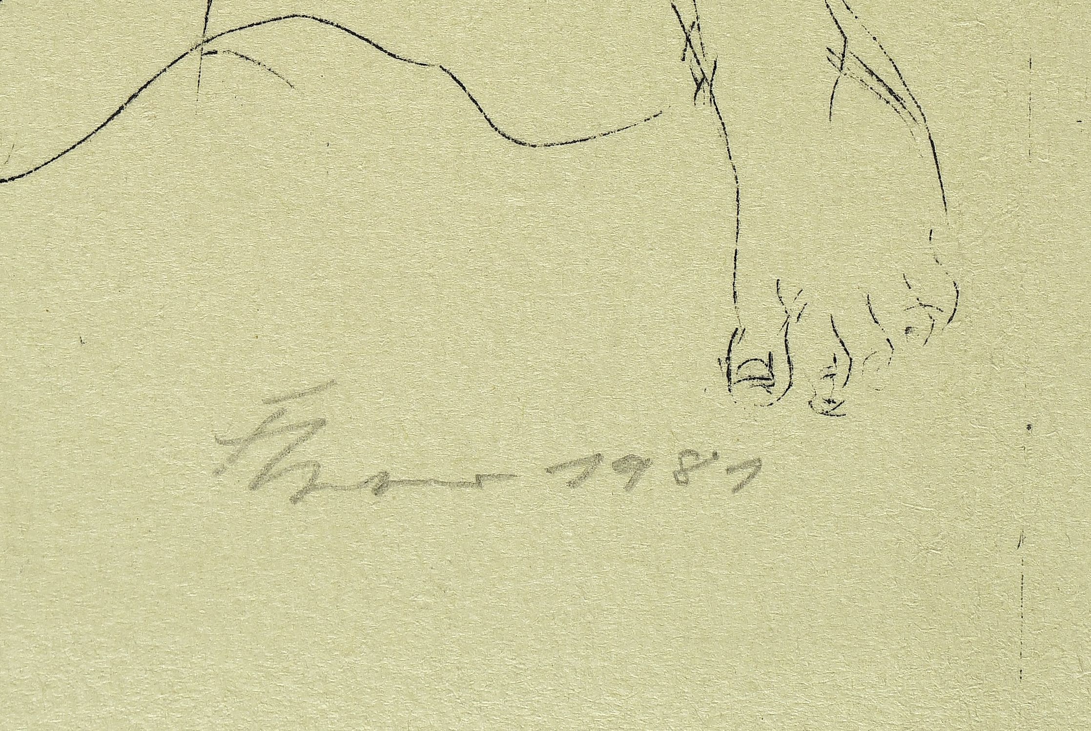 1981. Lithografie / Federlithografie, in Schwarz, auf gelbem Velin. – Originale Künstlergrafik, von Fritz Cremer. – 20,5 x 18,5 cm (Darstellung), 44 x 30 cm (Blatt).