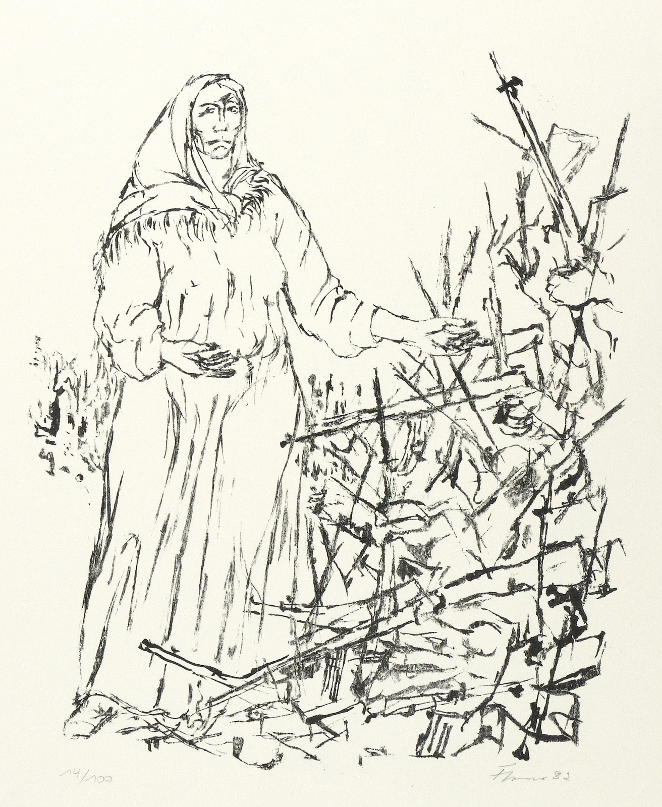 1982. Lithografie / Pinsel- und Kreidelithografie, in Schwarz, auf Büttenpapier. – Originale Künstlergrafik, von Fritz Cremer. – Auflage Exemplar Nr. 14/100. – 26,0 x 22,5 cm (Darstellung / Druckbild), 49,5 x 39,5 cm (Blatt).