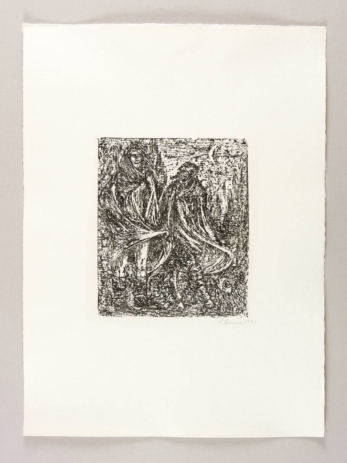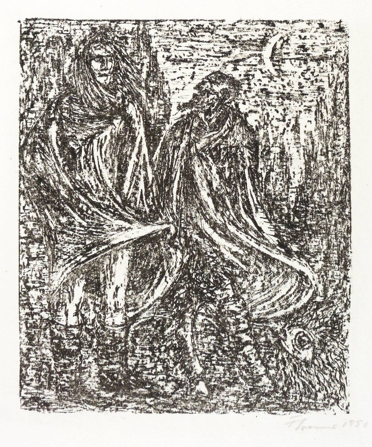 1956. Lithografie / Pinsel-, Kreide- & Federlithografie, in Schwarz, auf leichtem hellchamois Velin. – Originale Künstlergrafik, von Fritz Cremer. – Auflage 50 Exemplare. – 19,3 x 16,2 cm (Darstellung / Druckbild), 45 x 33 cm (Blatt).