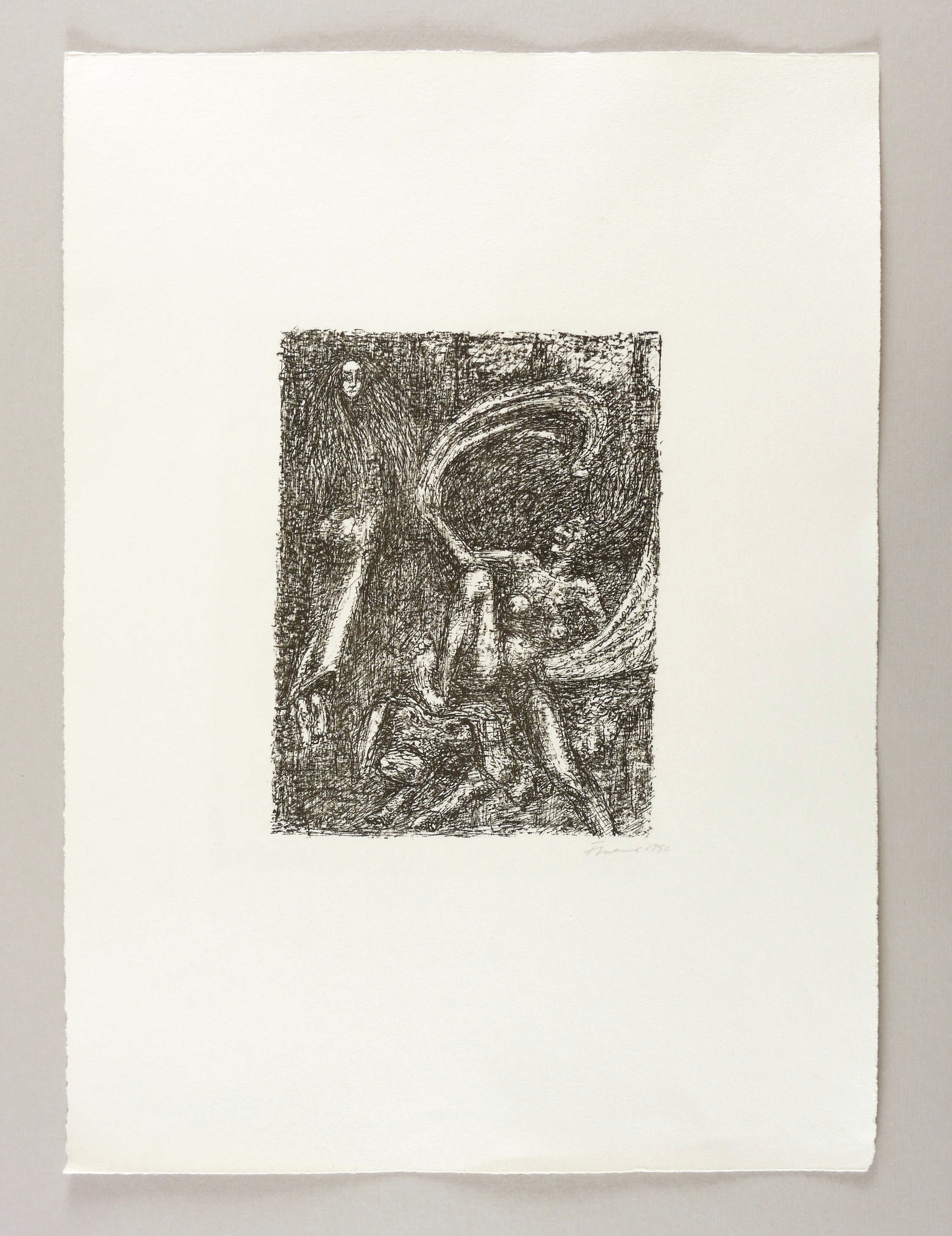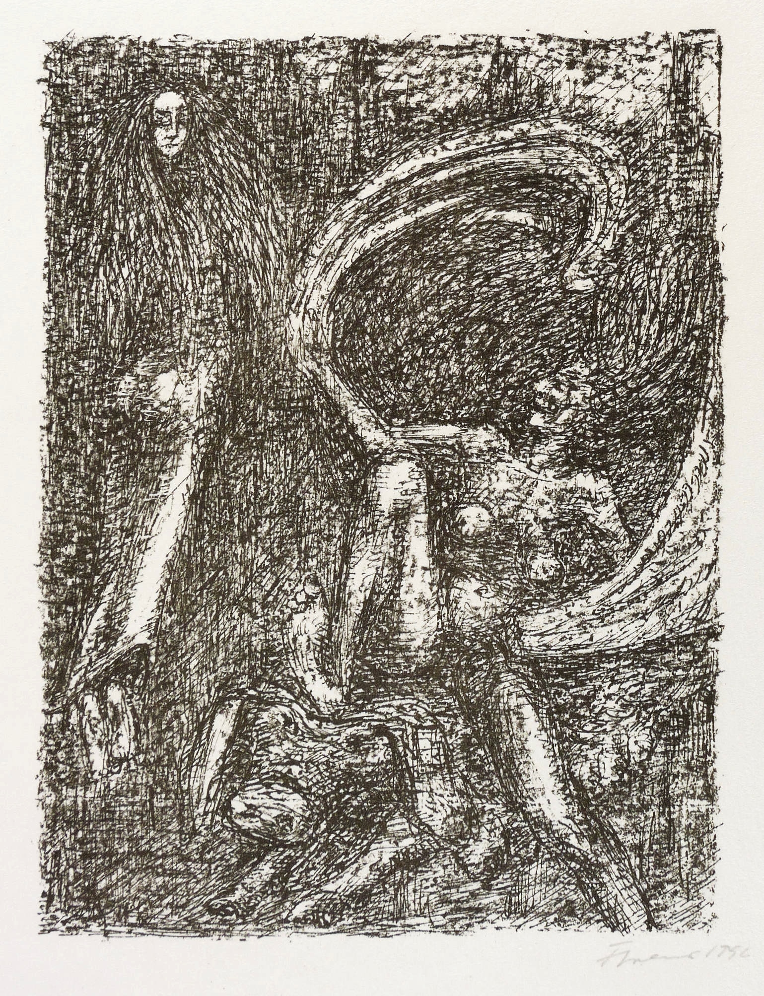 1956. Lithografie / Kreide- & Federlithografie, in Schwarz, auf leichtem hellchamois Velin. – erg, von Fritz Cremer. – Auflage 50 Exemplare. – 20,1 x 15,2 cm (Darstellung / Druckbild), 45 x 32 cm (Blatt).