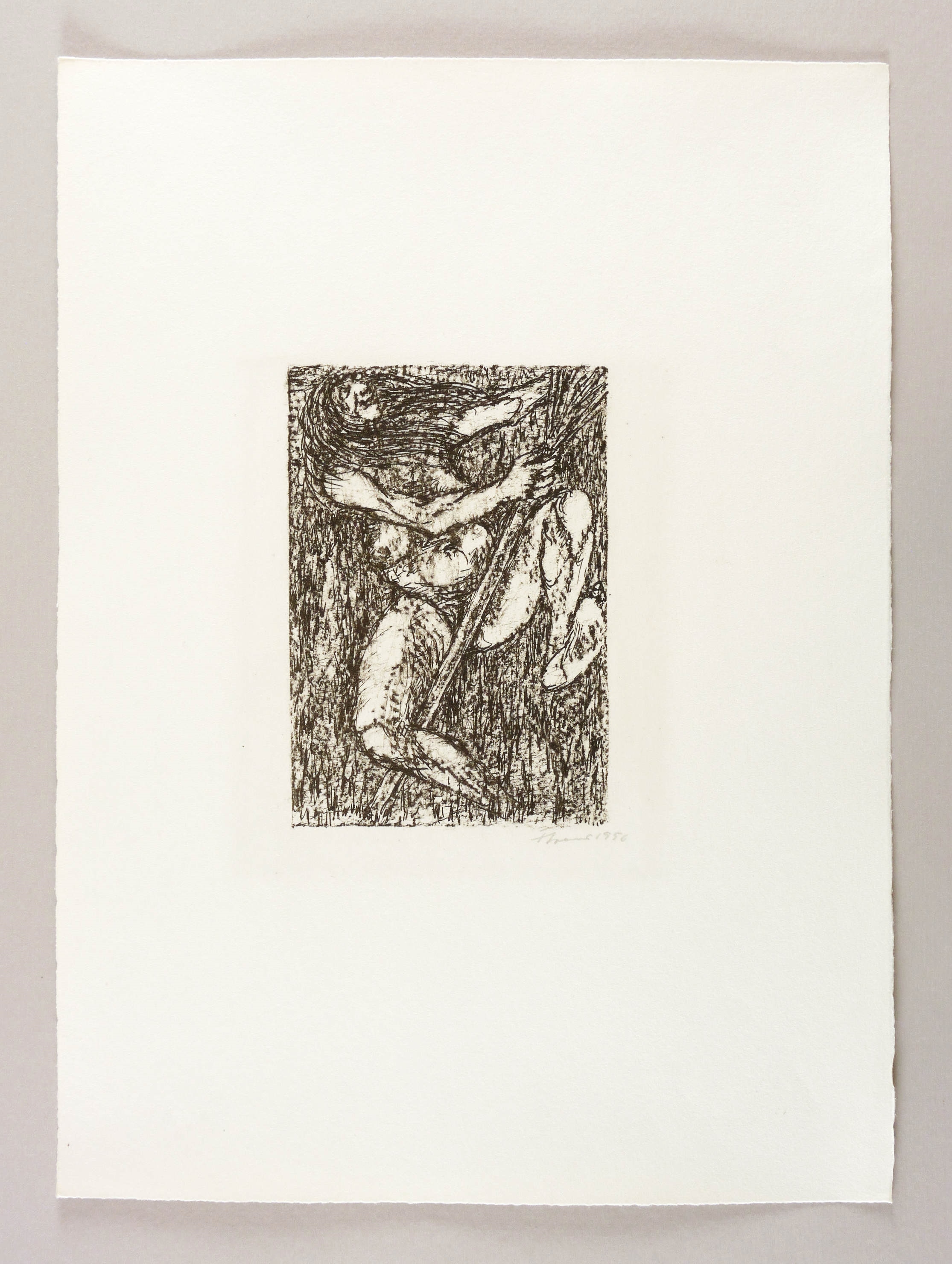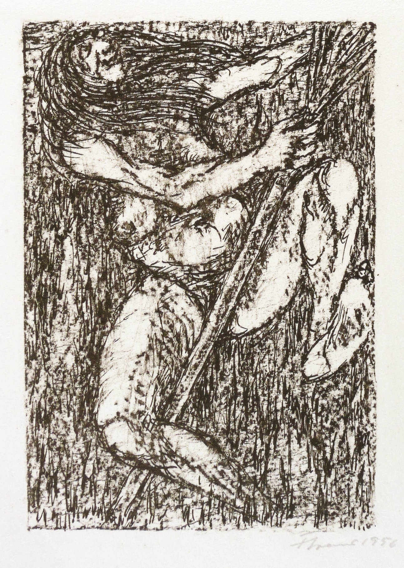 1956. Lithografie / Kreide- & Federlithografie, in Schwarz, auf leichtem hellchamois Velin. – Originale Künstlergrafik, von Fritz Cremer. – Auflage 50 Exemplare. – 17,8 x 12,3 cm (Darstellung / Druckbild), 44 x 33 cm (Blatt).
