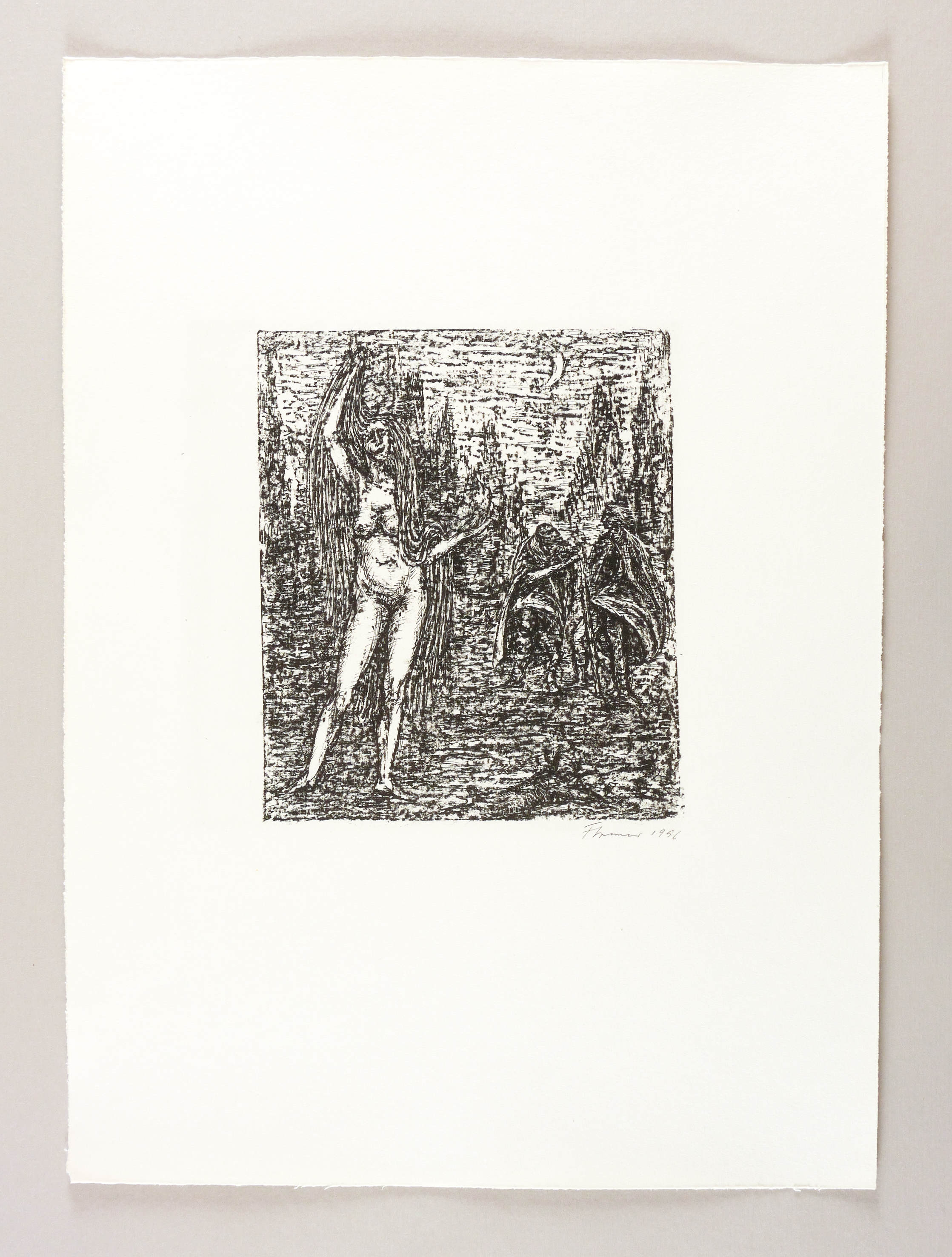 Gredig 66. – Rechts unten in Bleistift signiert und datiert: ″FCremer 1956″. – Aus der lithografierten Folge zu Johann Wolfgang von Goethe ″Faust″. – Sehr guter Zustand.