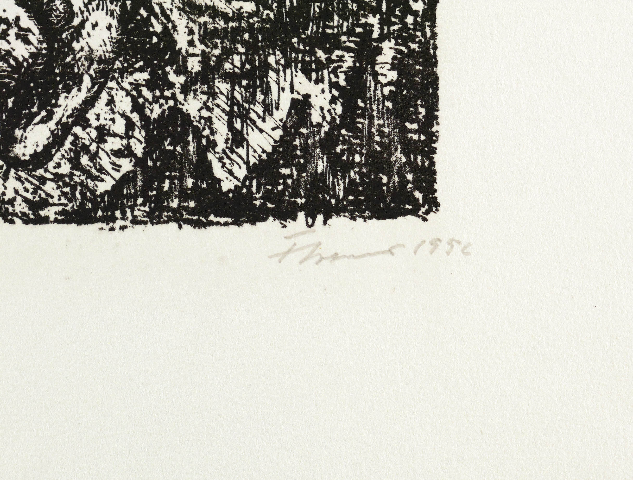 1956. Lithografie / Kreide- & Federlithografie, in Schwarz, auf leichtem hellchamois Velin. – Originale Künstlergrafik, von Fritz Cremer. – Auflage 50 Exemplare. – 24,8 x 18,9 cm (Darstellung / Druckbild), 45 x 32 cm (Blatt).