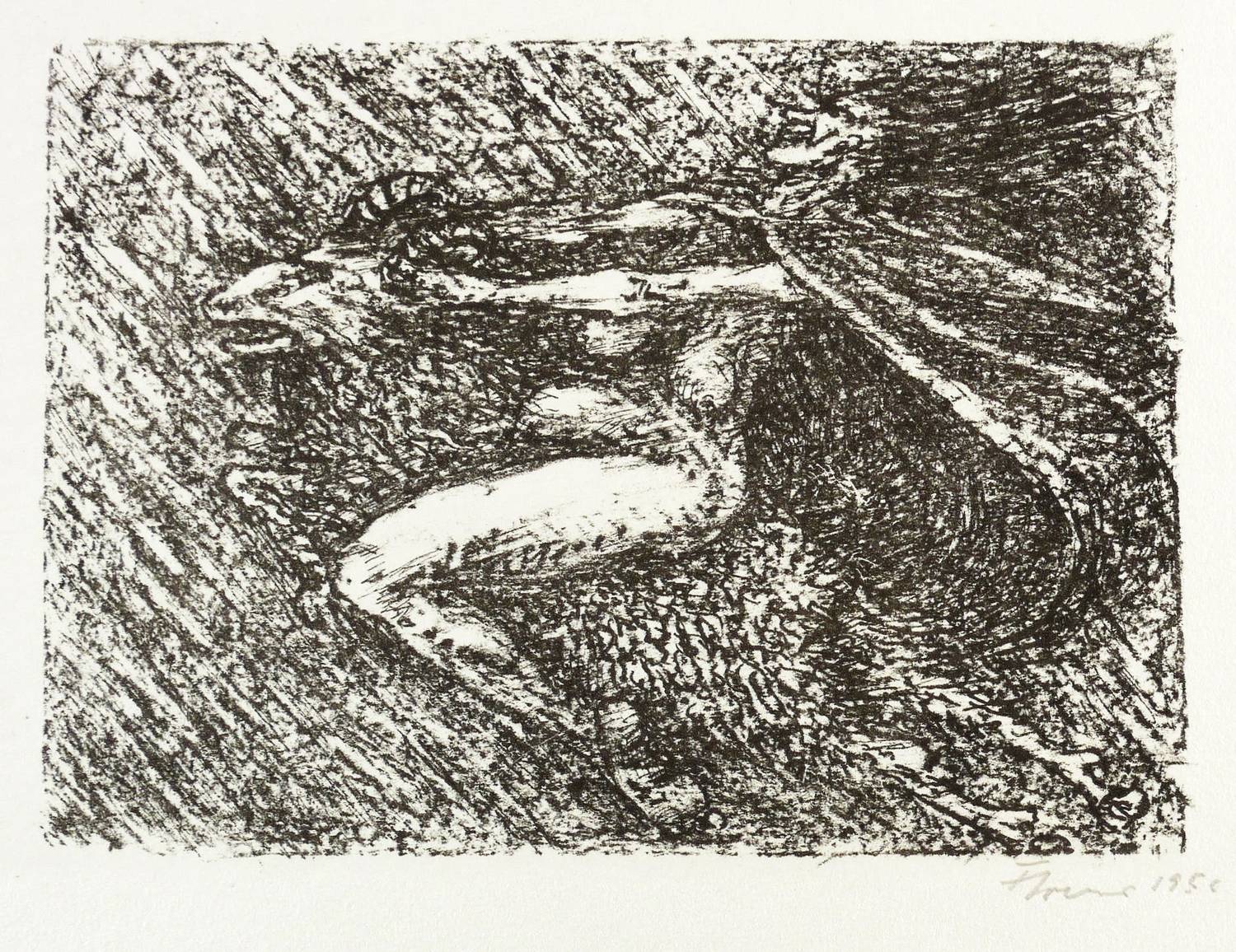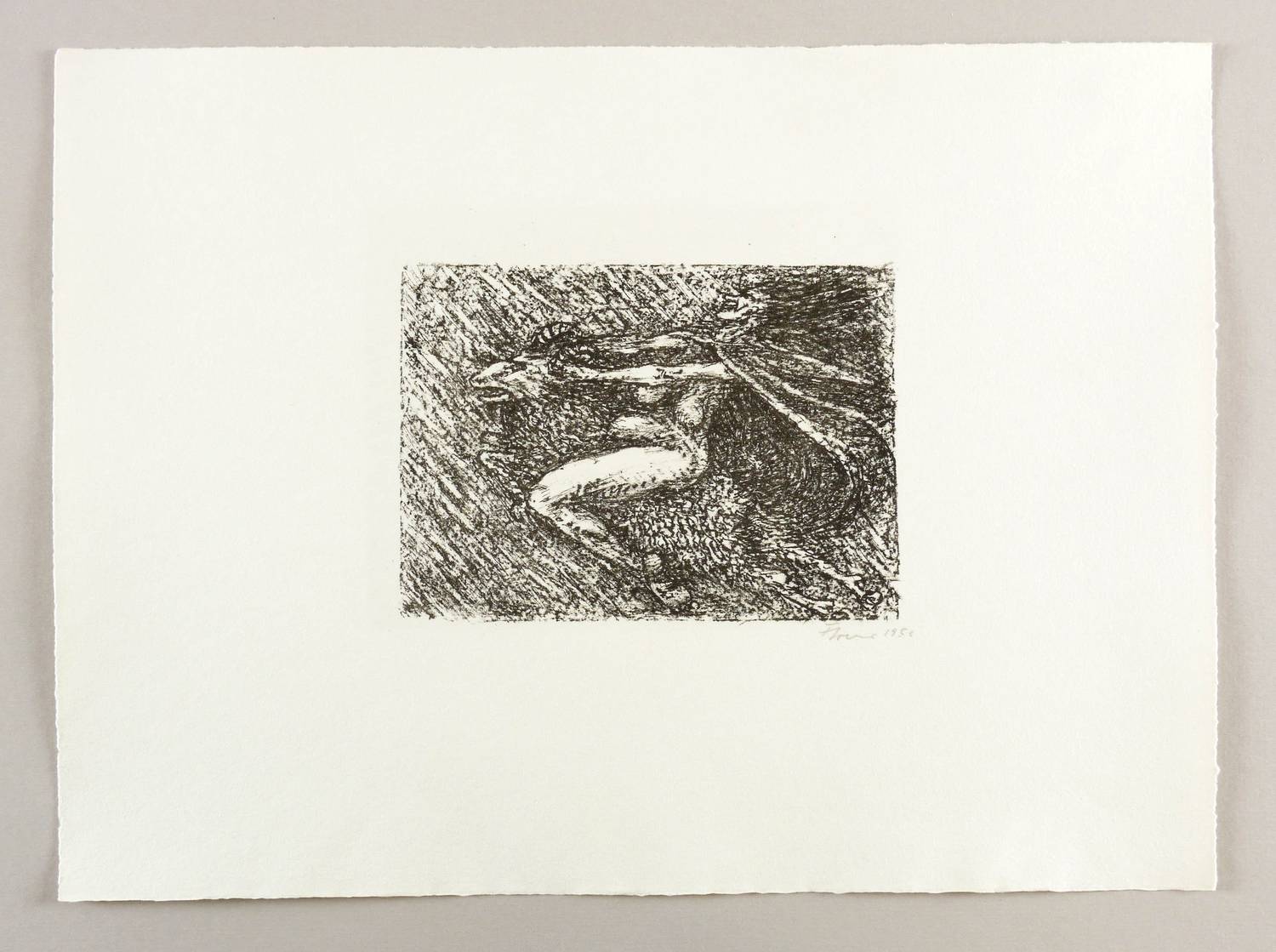 1956. Lithografie / Kreide- & Federlithografie, in Schwarz, auf leichtem hellchamois Velin. – Originale Künstlergrafik, von Fritz Cremer. – Auflage 50 Exemplare. – 13,7 x 19,0 cm (Darstellung / Druckbild), 33 x 44 cm (Blatt).