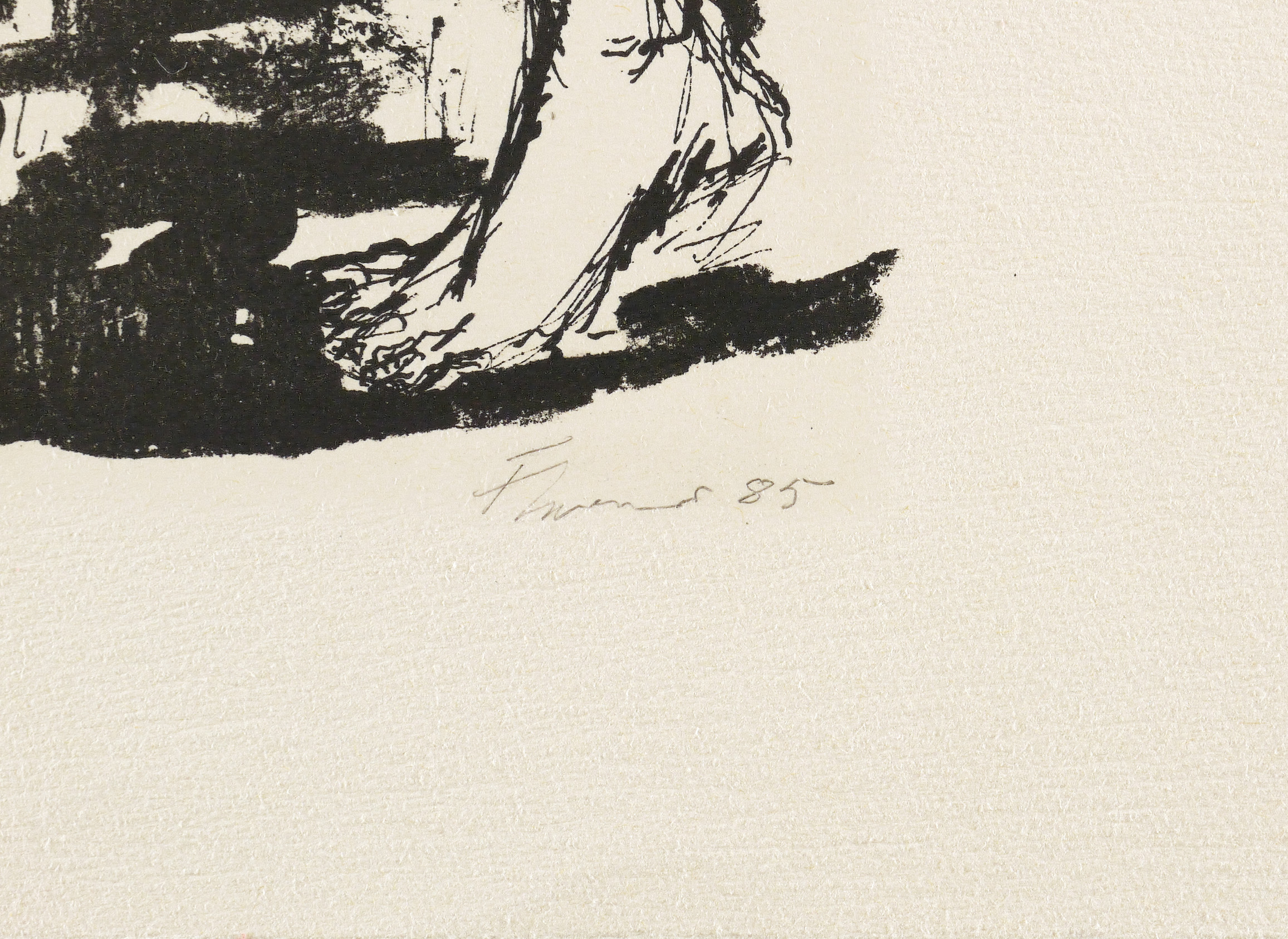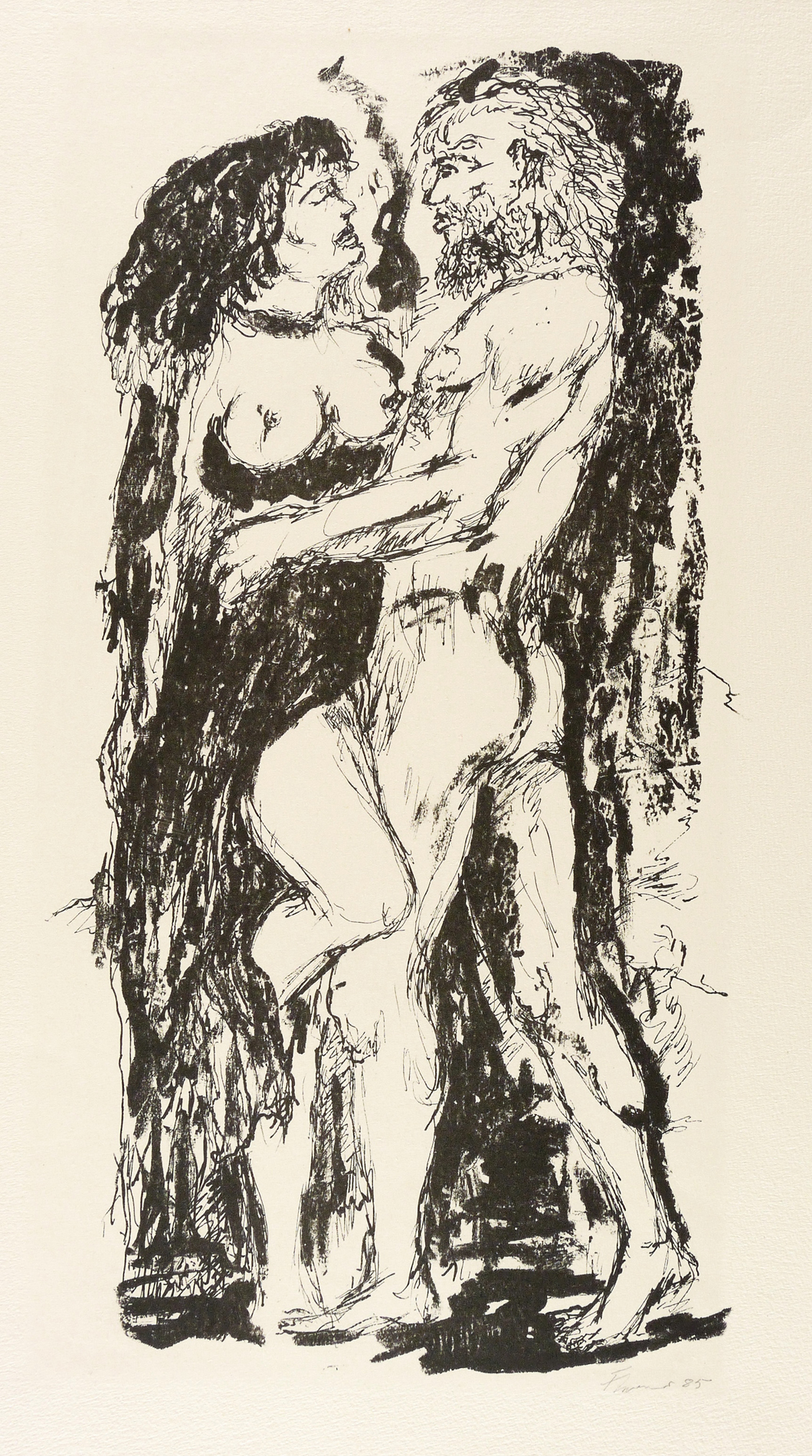 1985. Lithografie / Pinsel- & Federlithografie, in Schwarz, auf schwerem chamois Hahnemühle-Bütten. – Originale Künstlergrafik, von Fritz Cremer. – 46,1 x 23,7 cm (Darstellung / Druckbild), 54 x 40 cm (Blatt).