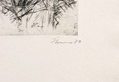 1979. Radierung / Strichätzung, in Schwarz, auf hellchamois Weißenborn. – Originale Künstlergrafik, von Fritz Cremer. – 15,3 x 12,5 cm (Darstellung / Platte), 35 x 25 cm (Blatt).