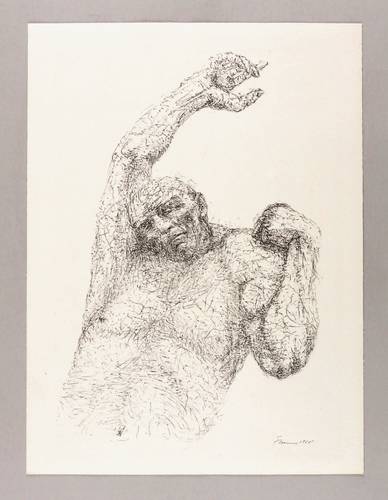 1968. Lithografie / Feder- & Kreidelithografie, in Schwarz, auf hellem Weißenborn. – Originale Künstlergrafik, von Fritz Cremer. – Auflage Exemplar Nr. 42/82. – 44,5 x 29,6 cm (Darstellung / Druckbild), 51 x 38 cm (Blatt).