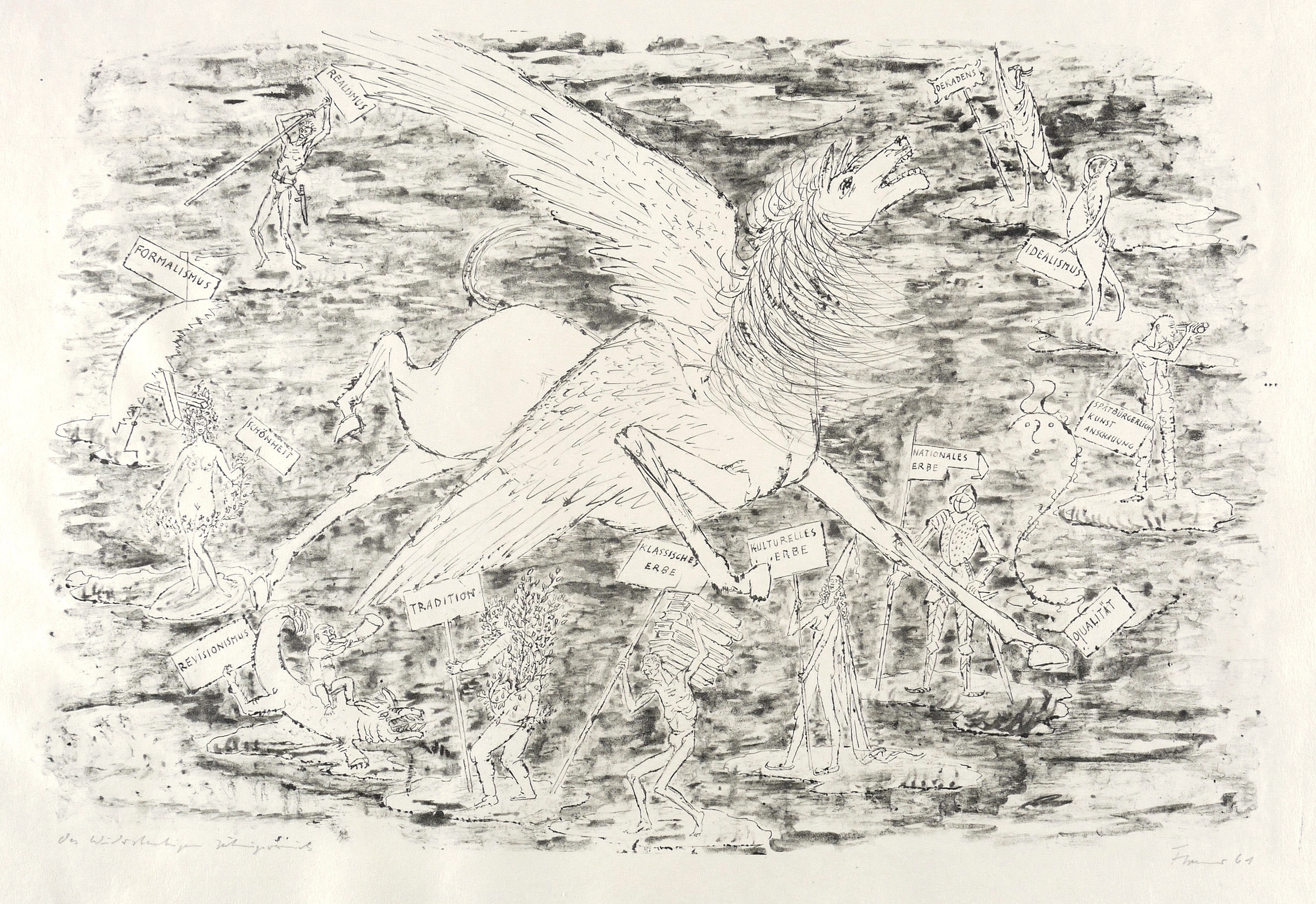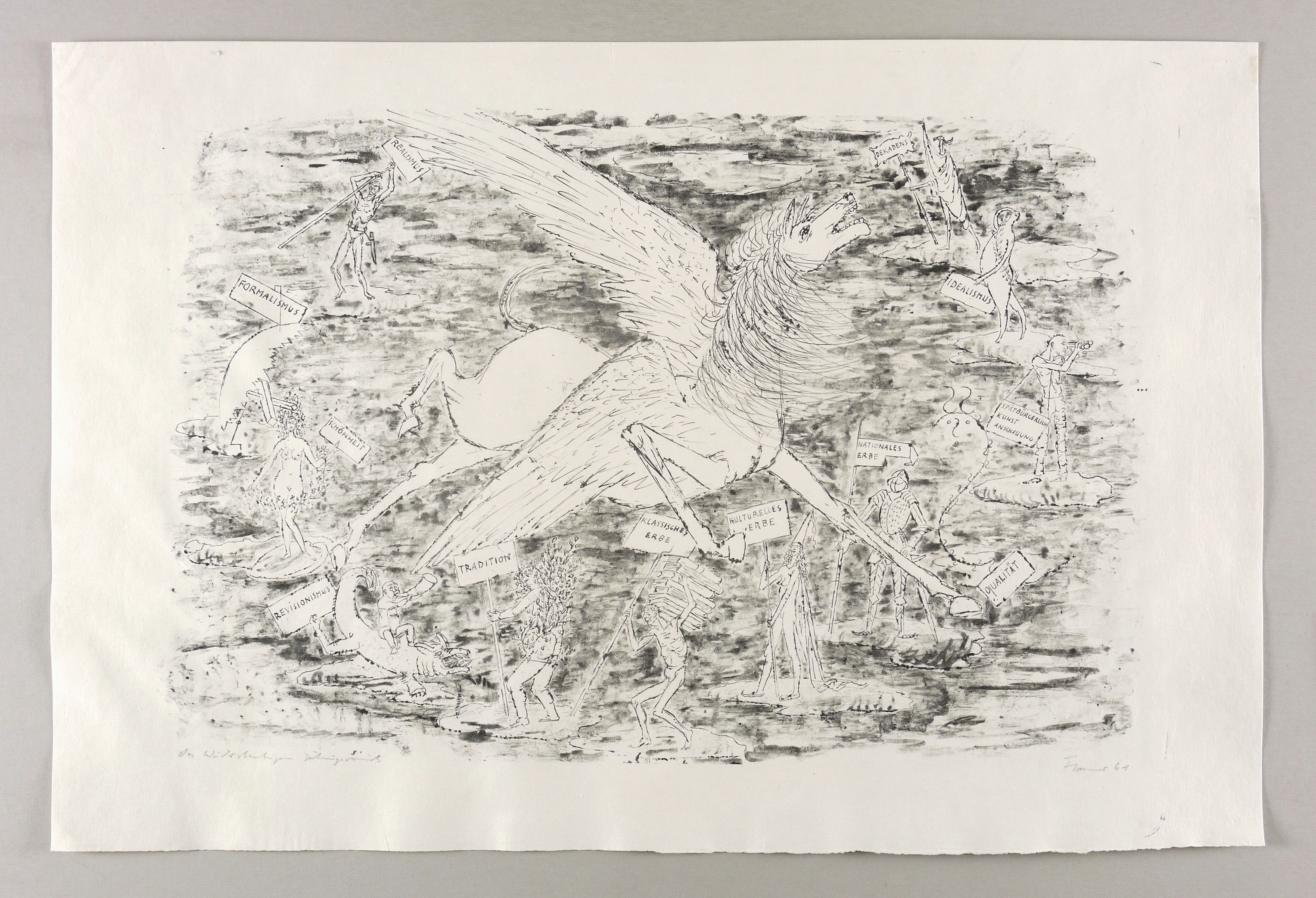 Gredig 148. – Rechts unten in Bleistift signiert und datiert: ″FCremer 61″. Links Titel: ″Des Widerständigen Zähmungsversuch″. – Sehr guter Zustand.