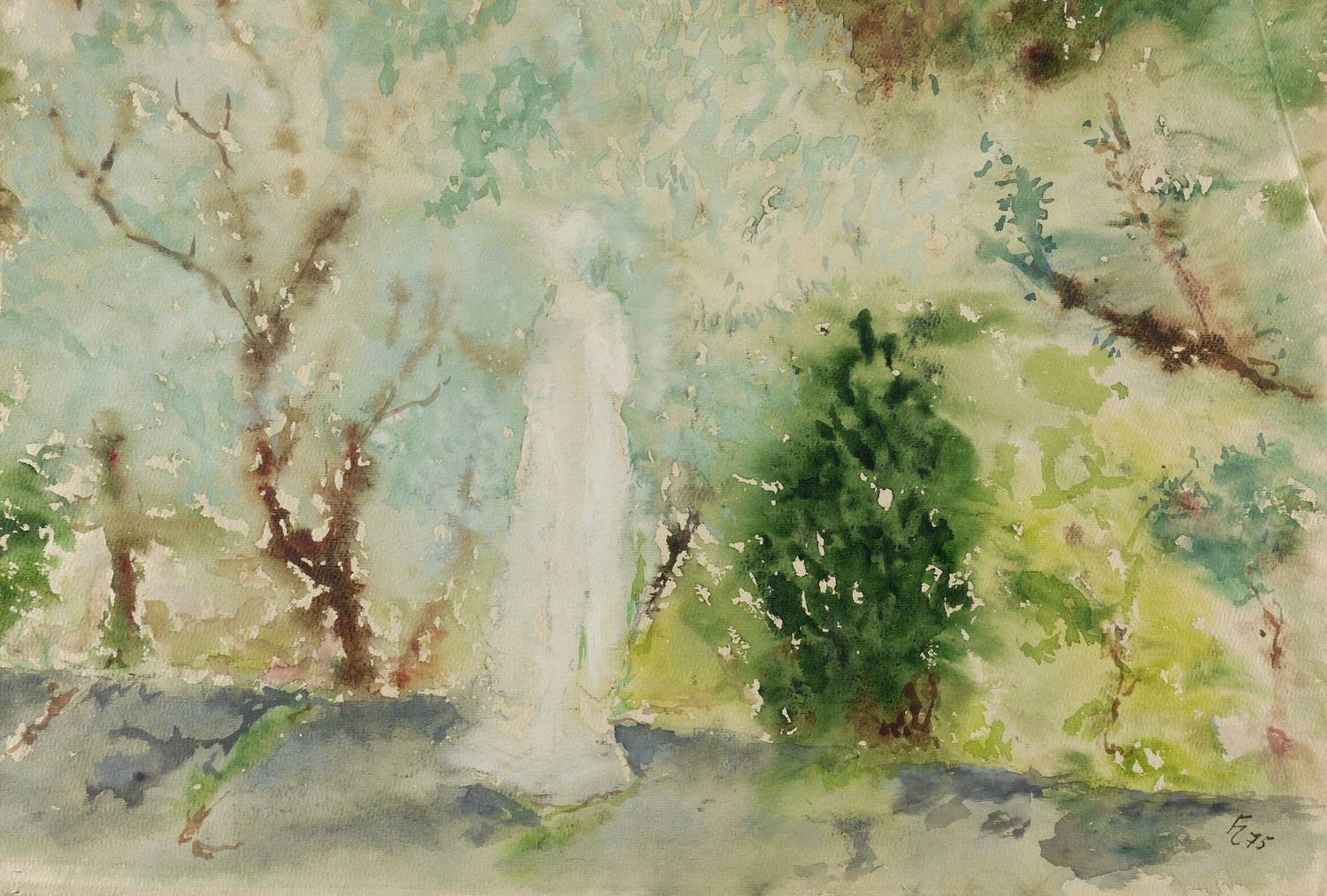 1975. Aquarell, auf beige getöntem Bütten. – Originale Künstlergrafik, von Fritz Cremer. – Unikat. – 25,1 x 37,0 cm (Darstellung / Blatt).
