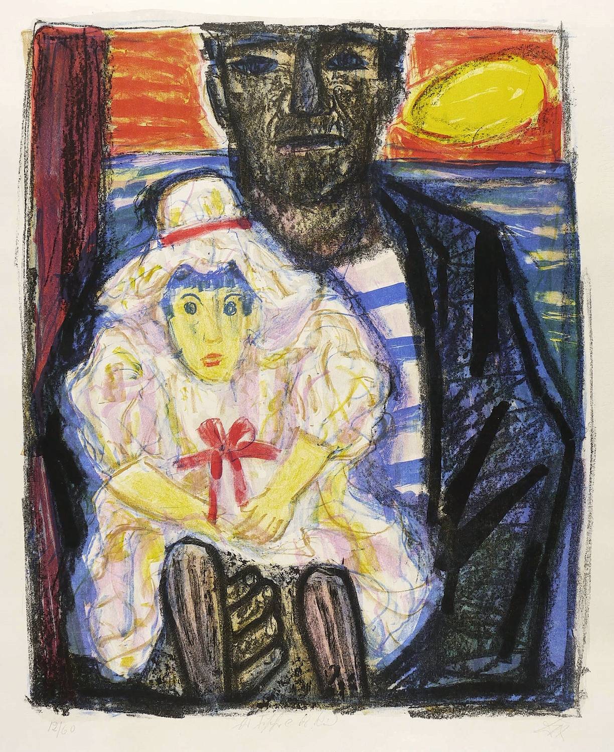 1961. Farblithografie / Pinsel- & Kreidelithografie, in 7 Farben, auf gelbem Van-Gelder-Zonen-Bütten. – Originale Künstlergrafik, von Otto Dix. – Auflage Exemplar Nr. 12/60. – 59,0 x 49,0 cm (Darstellung / Druckbild), 73 x 58 cm (Blatt).