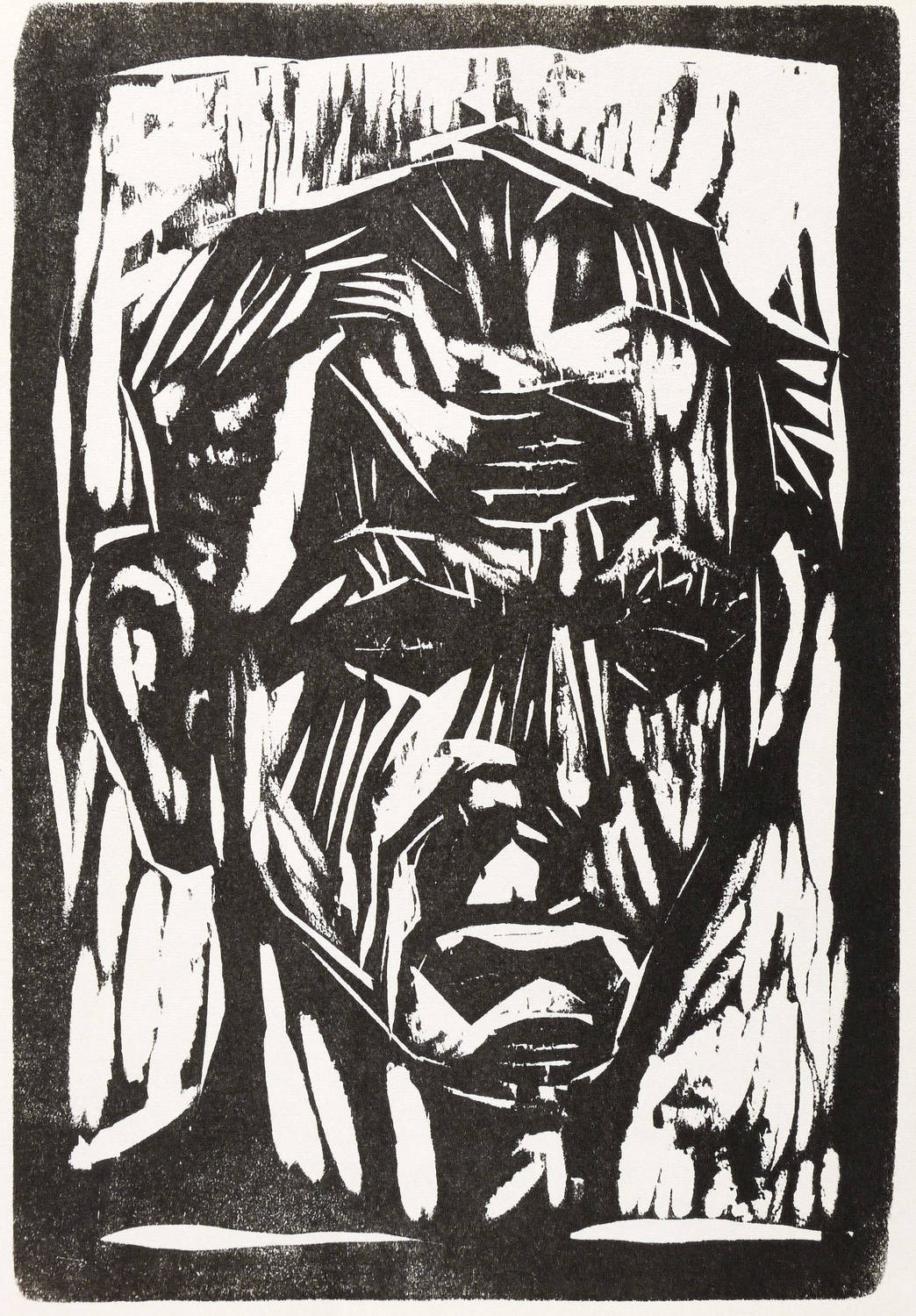 Karsch 272 d. – Verso typografisch bezeichnet: ″Otto Dix, Selbstbildnis, Original-Holzschnitt, 1960″. – Eines von 3000 Exemplaren als originalgrafische Beilage des Katalogs ″50 Jahre Galerie Nierendorf″ (1970). – Sehr guter Zustand.