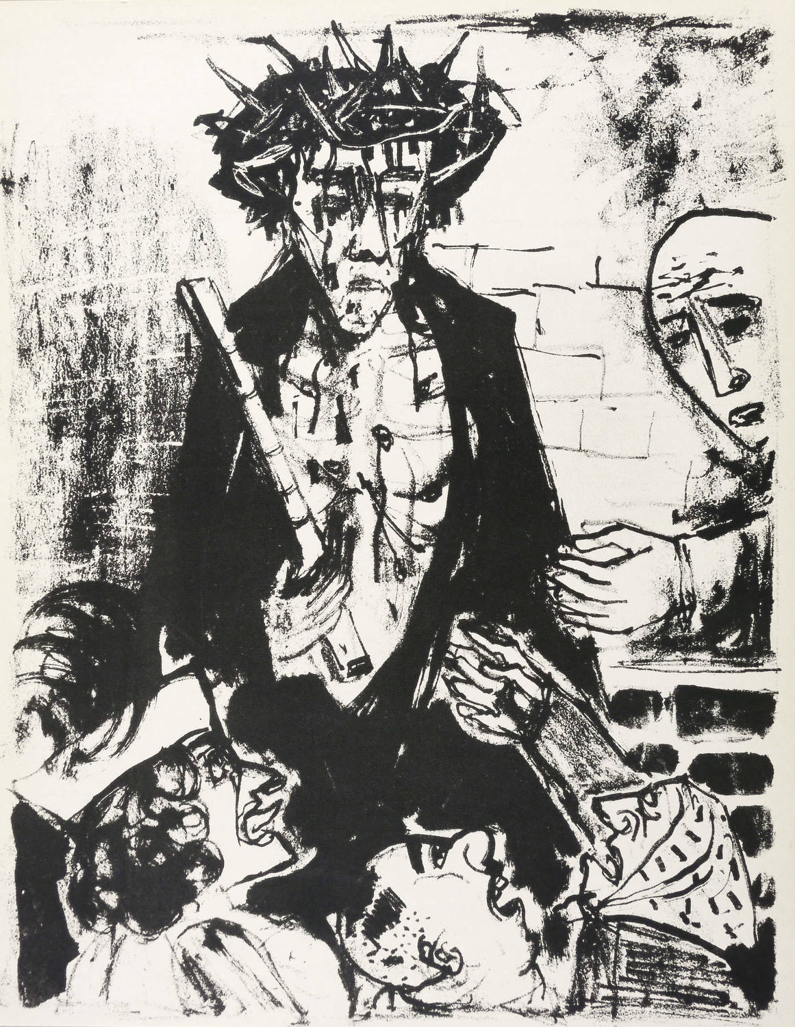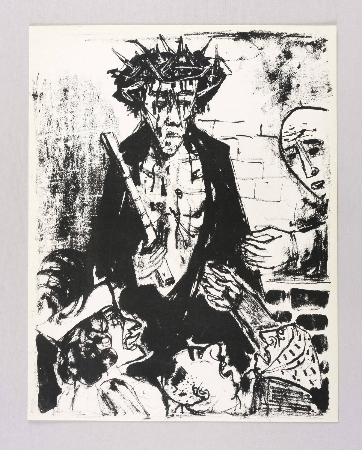 Karsch 262 II. – Aus: Otto Dix, Das Evangelium nach Matthäus (Berlin: Käthe Vogt Verlag 1960). – Nicht handsigniert. Typografischer Rückentext: ″und spieen ihn an und nahmen das Rohr und schlugen damit sein Haupt.″ – Blatt Nr. 28 aus der Folge von 33 Lithografien zum Matthäus-Evangelium, die als Einzeldrucke auf Japan abgezogen in Mappen in einer Auflage von 30 Exemplaren erschienen sowie in Buchform mit Rückentext im Käthe Vogt Verlag, Berlin. - Druck der Erker-Presse, St. Gallen. – Originalrandiges unbeschnittenes Exemplar. Ohne Mängel. Sehr guter Erhaltungszustand.