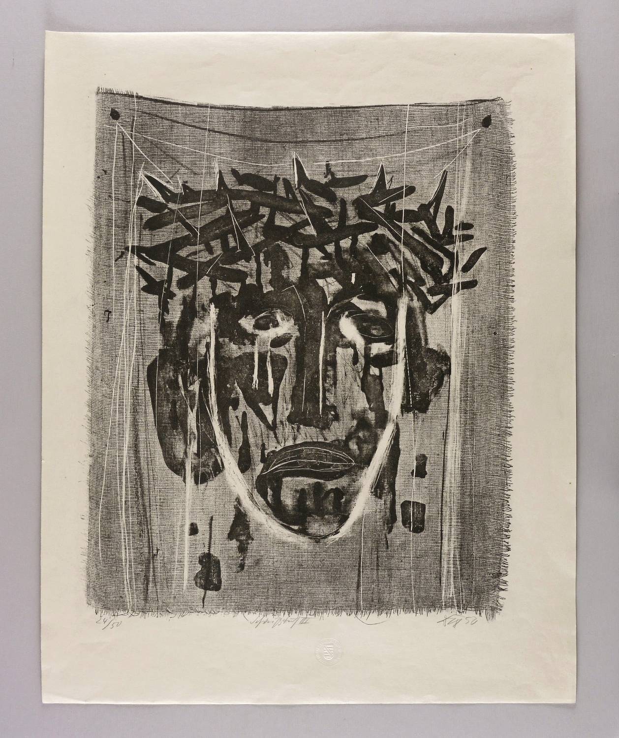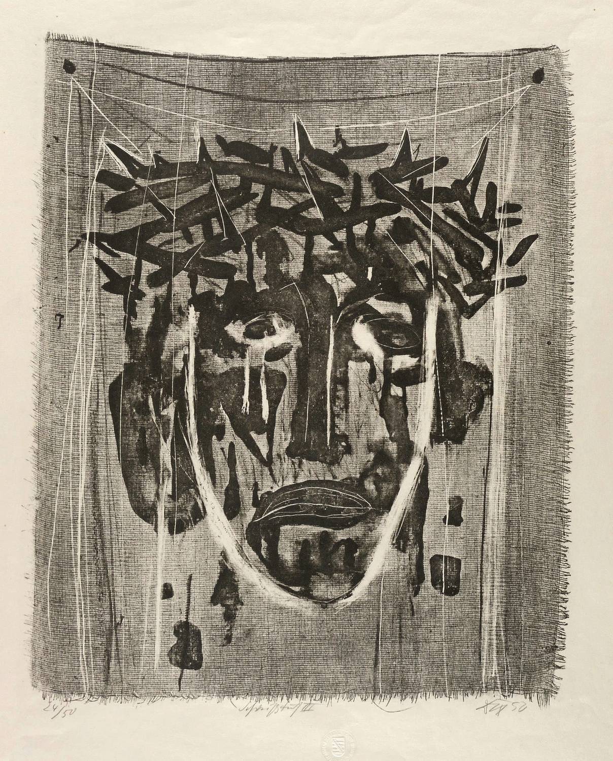 Karsch 189. – In Bleistift rechts unten signiert und datiert: ″Dix 50″. Links Auflagenbezeichnung: ″24/50″. Mittig Titel: ″Schweißtuch III″. Darunter Trockenstempel der Akademie der Bildenden Künste Dresden. – Im Werkverzeichnis der Druckgrafik verzeichnet als ″Schweißtuch III (Mund geschlossen)″. - Sogenannter Akademie- Druck. - Drucker Roland Ehrhardt, Dresden. – Unscheinbare Altersspuren. Keine ersichtlichen Mängel. Sehr guter Zustand.