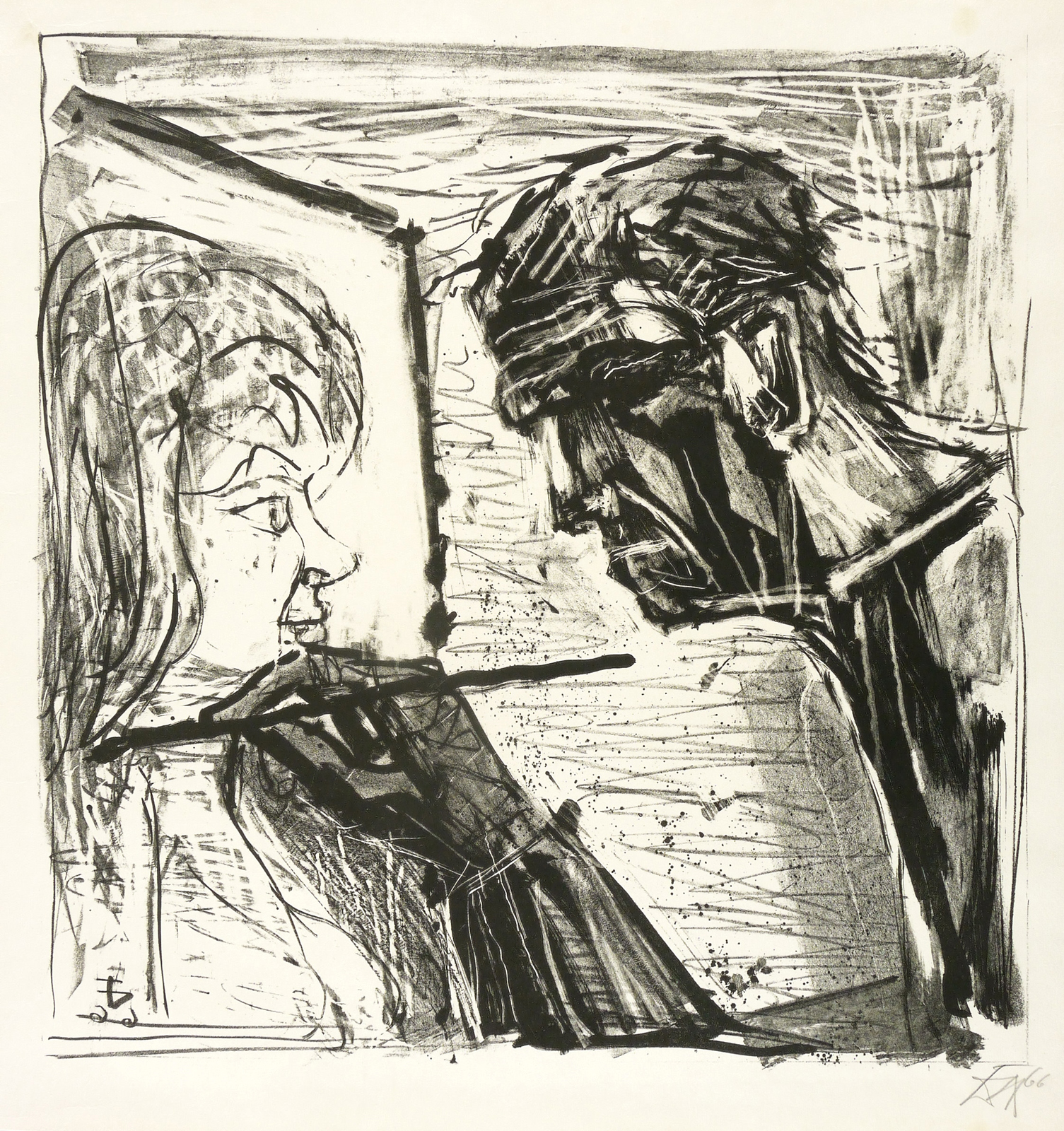 1966. Lithografie / Kreide- & Pinsellithografie, in Schwarz, auf hellchamois Velinkarton. – Originale Künstlergrafik, von Otto Dix. – Probedruck. – 53,5 x 51,5 cm (Darstellung / Stein), 60 x 57 cm (Blatt).