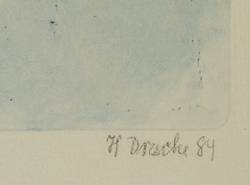 Heinz Drache (1929 Dresden - 1989 Radebeul). Deutscher Maler und Grafiker. 1948-53 Studium an der Hochschule für Bildende Künste Dresden (HfBK) bei Hans Theo Richter, Josef Hegenbarth, Fritz Dähn und Max Erich Nicola. Danach Aspirantur bei Heinz Lohmar. Ab 1953 freischaffend tätig. Mitglied des Verbandes Bildender Künstler der DDR. 1960-80 Gestalter beim DEFA-Trickfilmstudio in Dresden. Ab 1981 wieder freischaffend in Radebeul-Oberlößnitz. Neben Grafik und Malerei schuf er Wandgemälde u.a. für die Lagerhalle des VEB Kaffee und Tee, die Mittelschule Oberlößnitz und den Dresdner Kulturpalast. 1956 Kunstpreis der Stadt Dresden. 1973 und 1979 Goldene Lorbeer des Fernsehens der DDR. 1983 Kunstpreis der Stadt Radebeul.