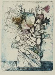 1985. Farbradierung / Strichätzung & Kaltnadel, in drei Farben. – Originale Künstlergrafik, von Heinz Drache. – Auflage 20 Exemplare. – 21,9 x 16,0 cm (Darstellung / Platte), 30 x 25 cm (Blatt).