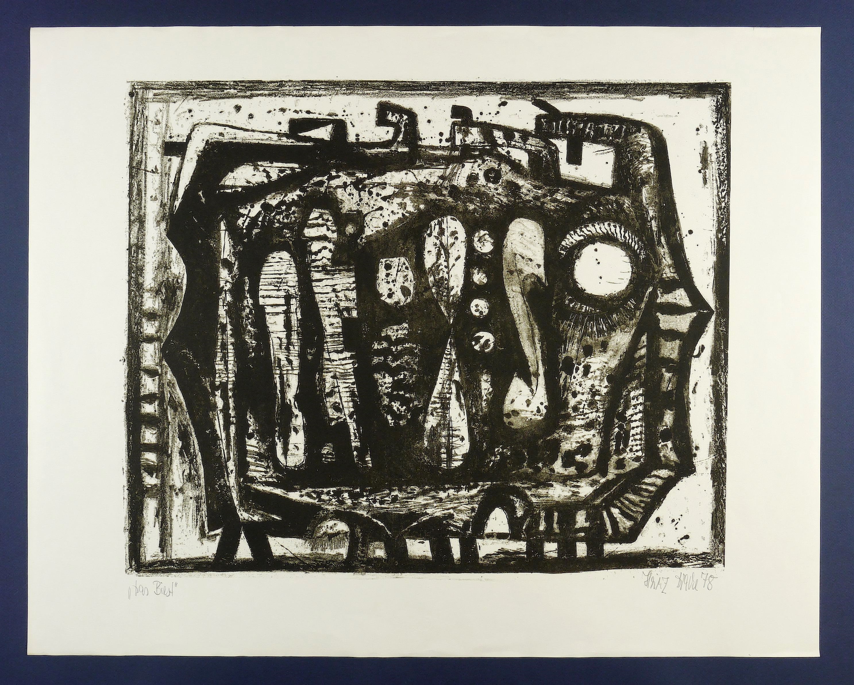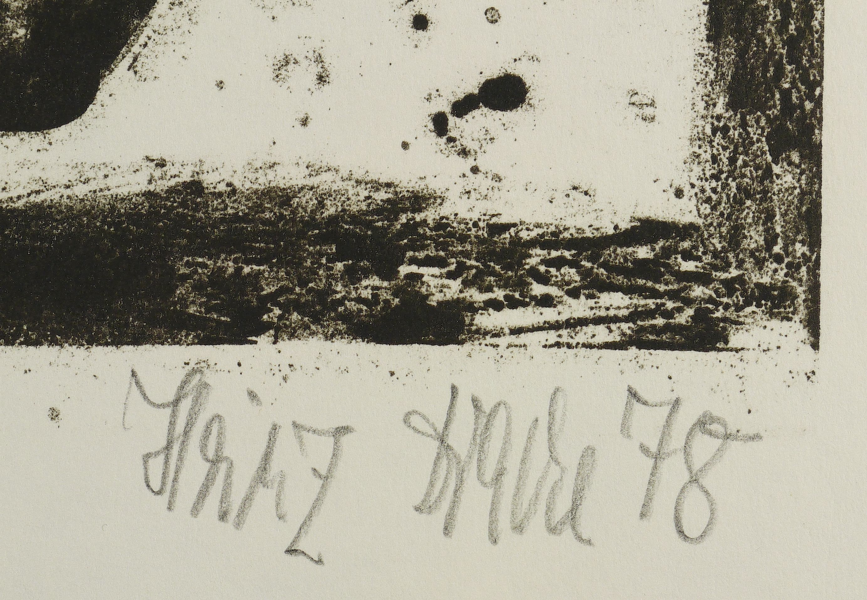 1978. Lithografie / Kreide- & Pinsellithografie, in Schwarz, auf gelblichem Velin. – Originale Künstlergrafik, von Heinz Drache. – 47,5 x 57,5 cm (Darstellung / Druckbild), 61 x 76 cm (Blatt).