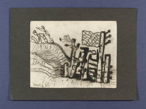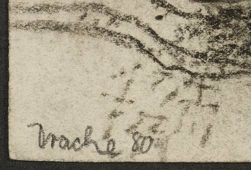 1980. Zeichnung / Kohle, auf Papier. – Originale Künstlergrafik, von Heinz Drache. – Unikat. – 10,8 x 14,0 cm (Darstellung / Blatt), 15,0 x 20,5 cm (Trägerblatt).