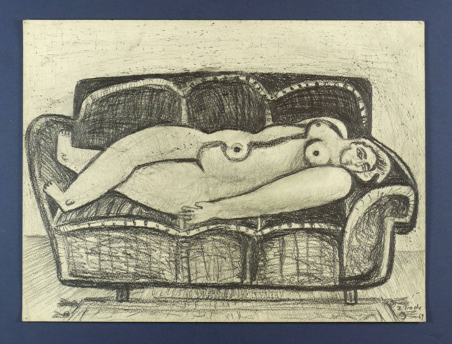 Rechts unten signiert und datiert. – Stärker fingerspurig und etwas berieben. Reißzwecklöchlein. Noch gut erhalten.