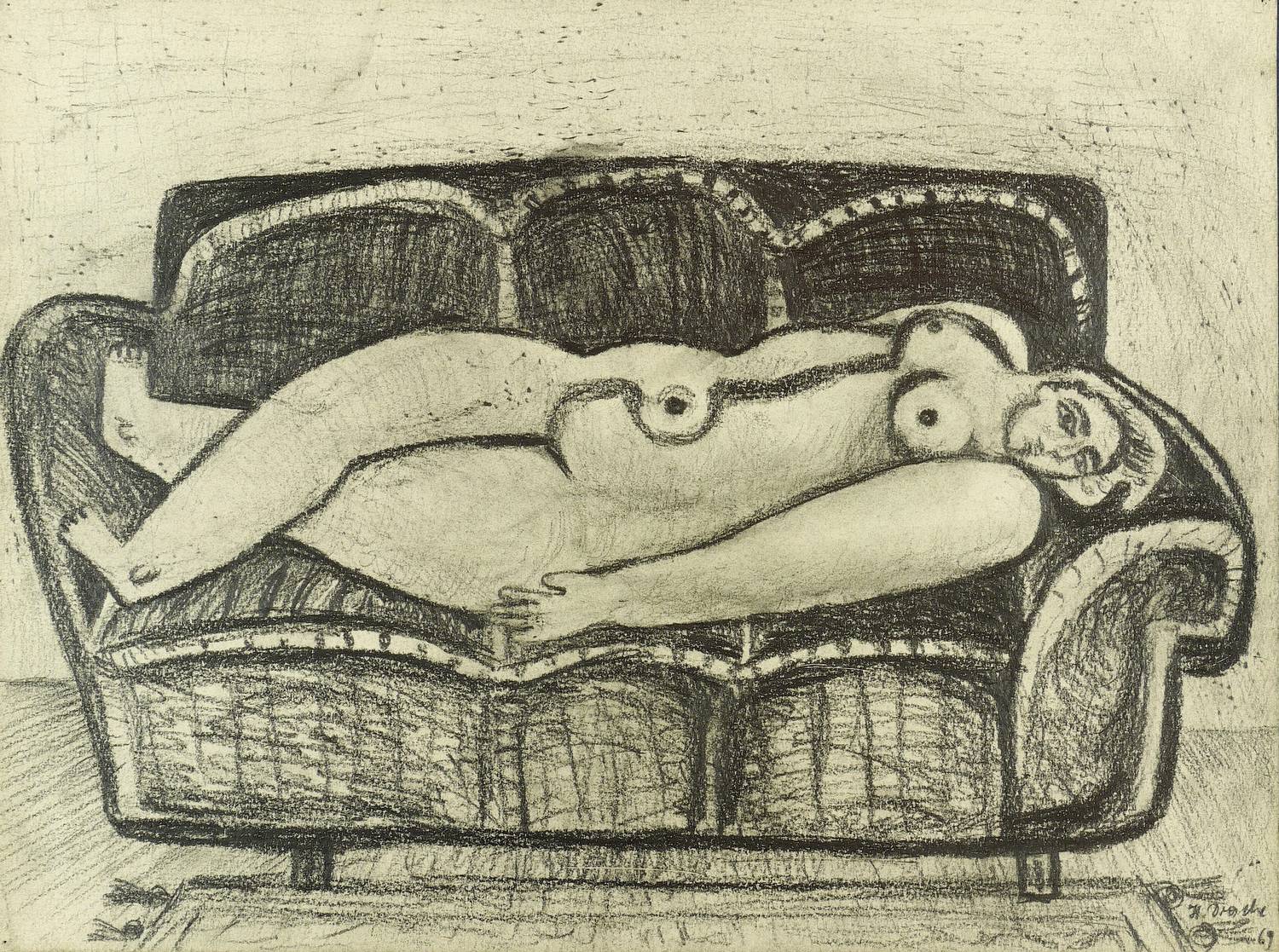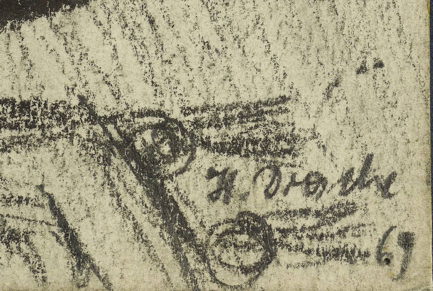 1969. Zeichnung / Graphitzeichnung, auf Papier. – Originale Künstlergrafik, von Heinz Drache. – Unikat. – 36,0 x 49,0 cm (Darstellung / Blatt).