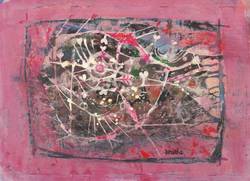 Um 1985. Zeichnung / Tempera, auf hellchamois Velinkarton. – Originale Künstlergrafik, von Heinz Drache. – Unikat. – 18,3 x 25,2 cm (Darstellung / Blatt).