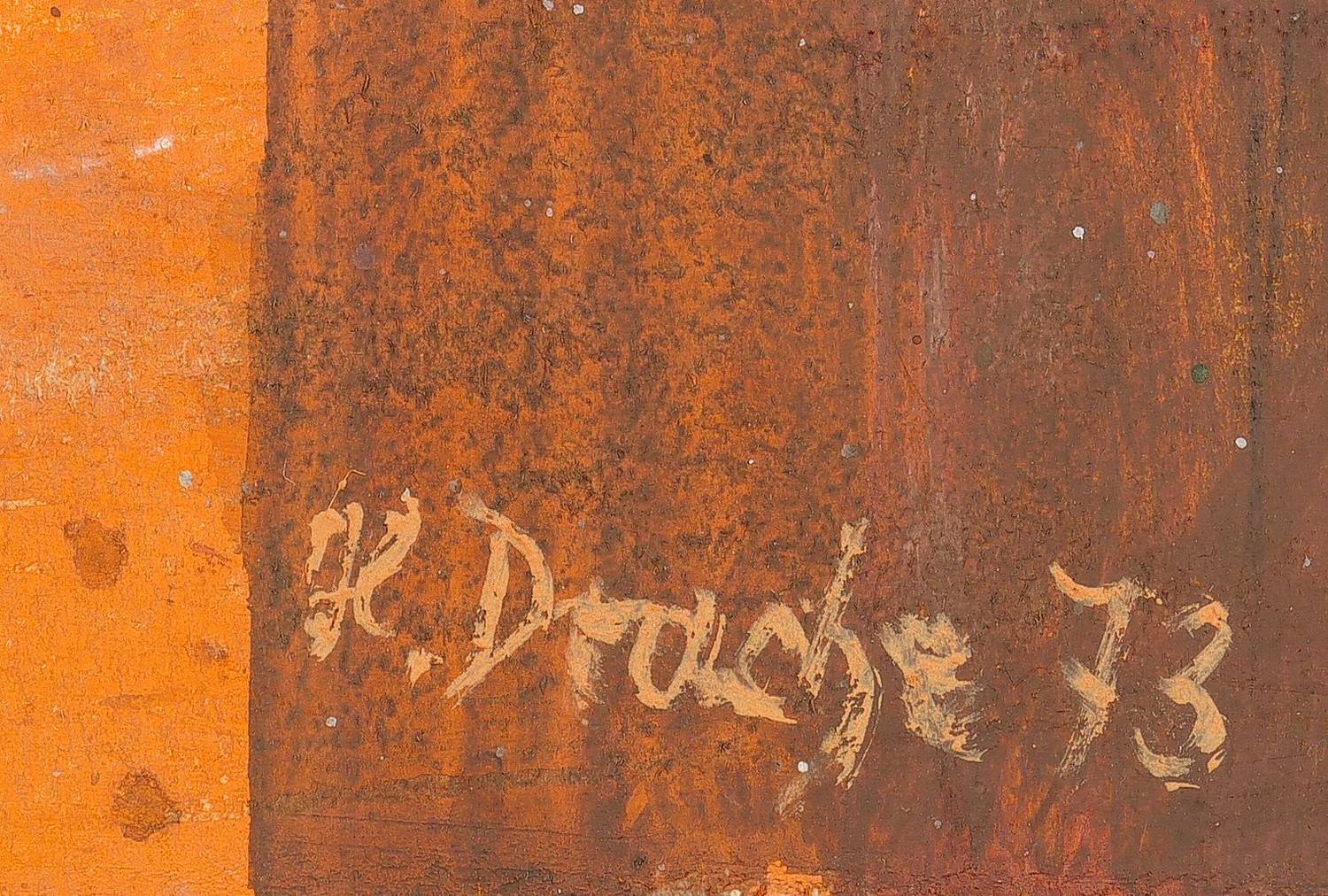 1973. Zeichnung / Tempera, auf hellchamois Karton. – Originale Künstlergrafik, von Heinz Drache. – Unikat. – 41,8 x 56,6 cm (Darstellung / Blatt).