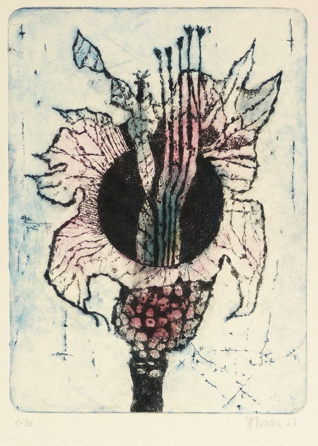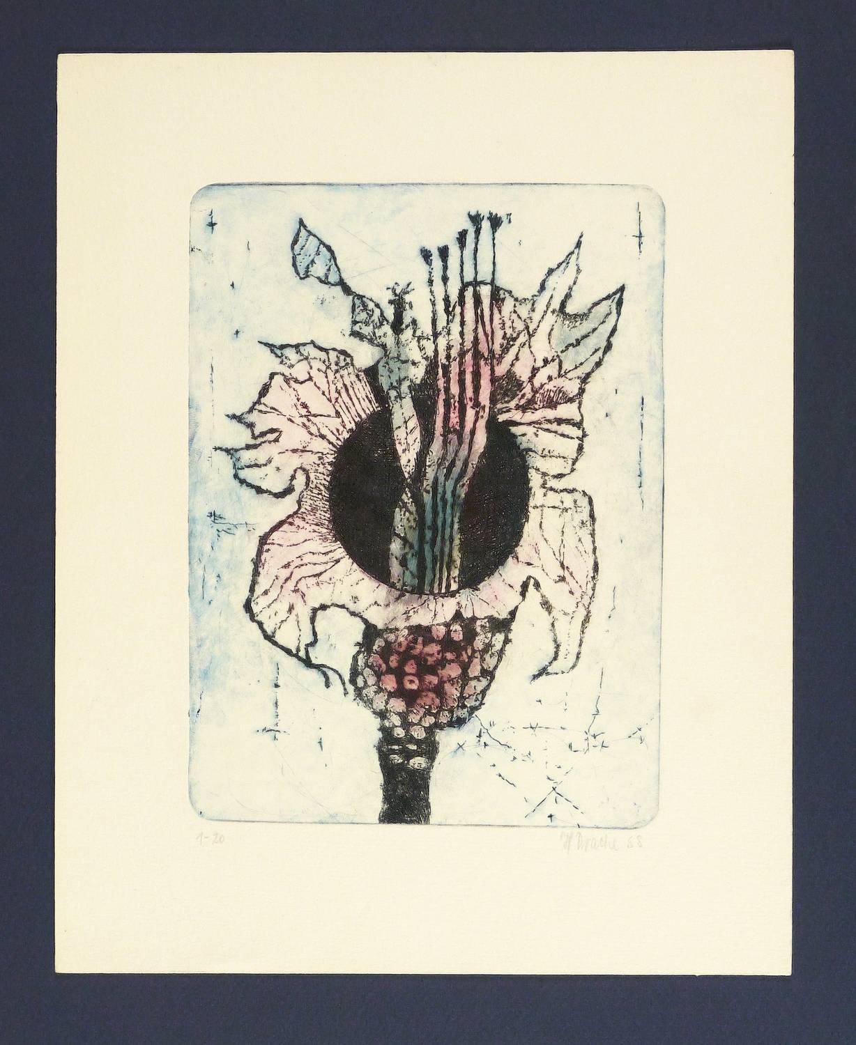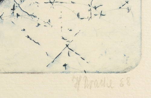 1988. Farbradierung / Strichätzung, in 2 Farben. – Originale Künstlergrafik, von Heinz Drache. – Auflage 20 Exemplare. – 20,2 x 14,9 cm (Darstellung / Platte), 29 x 23 cm (Blatt).