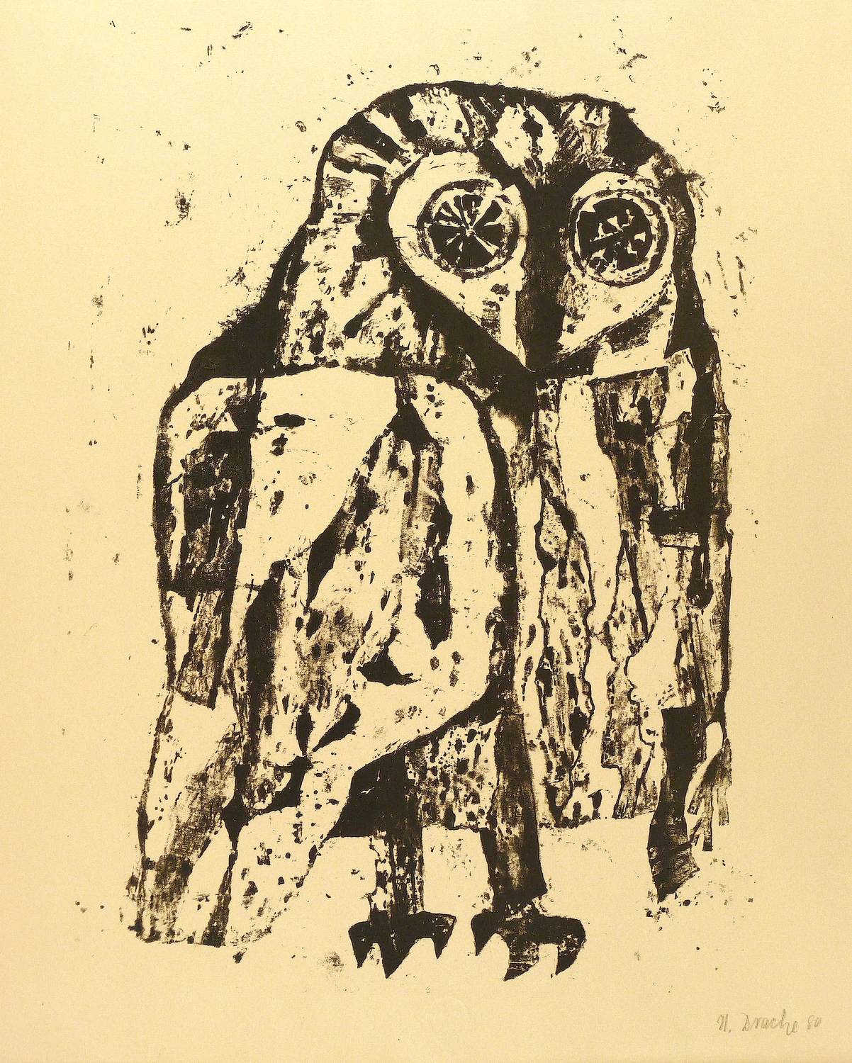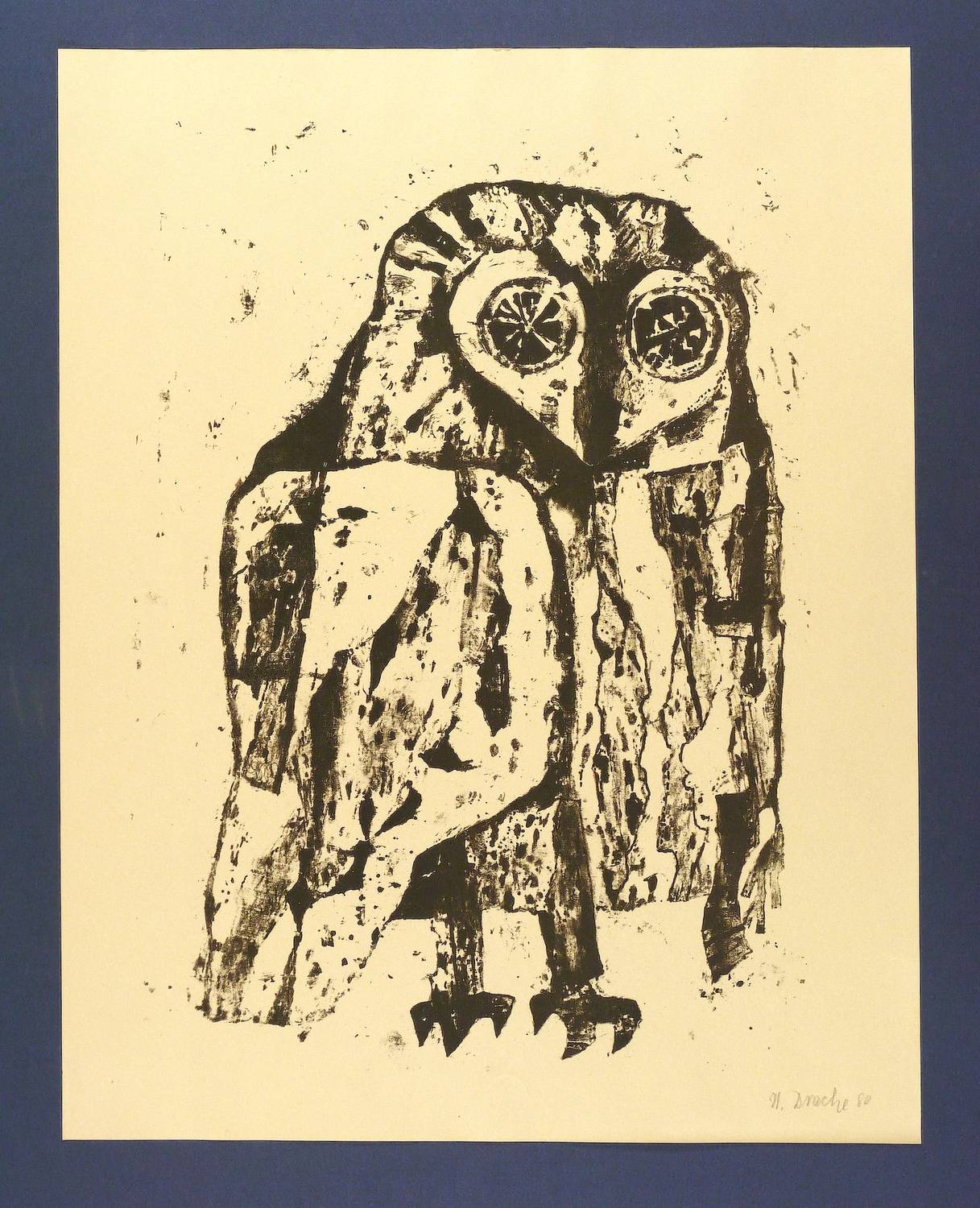1980. Farblithografie / Pinsellithografie, in Schwarzviolett, auf hellbraunem Maschinenbütten. – Originale Künstlergrafik, von Heinz Drache. – 55,0 x 40,0 cm (Darstellung), 63 x 49 cm (Blatt).