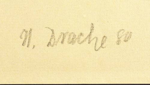 Heinz Drache (1929 Dresden - 1989 Radebeul). Deutscher Maler und Grafiker. 1948-53 Studium an der Hochschule für Bildende Künste Dresden (HfBK) bei Hans Theo Richter, Josef Hegenbarth, Fritz Dähn und Max Erich Nicola. Danach Aspirantur bei Heinz Lohmar. Ab 1953 freischaffend tätig. Mitglied des Verbandes Bildender Künstler der DDR. 1960-80 Gestalter beim DEFA-Trickfilmstudio in Dresden. Ab 1981 wieder freischaffend in Radebeul-Oberlößnitz. Neben Grafik und Malerei schuf er Wandgemälde u.a. für die Lagerhalle des VEB Kaffee und Tee, die Mittelschule Oberlößnitz und den Dresdner Kulturpalast. 1956 Kunstpreis der Stadt Dresden. 1973 und 1979 Goldene Lorbeer des Fernsehens der DDR. 1983 Kunstpreis der Stadt Radebeul.