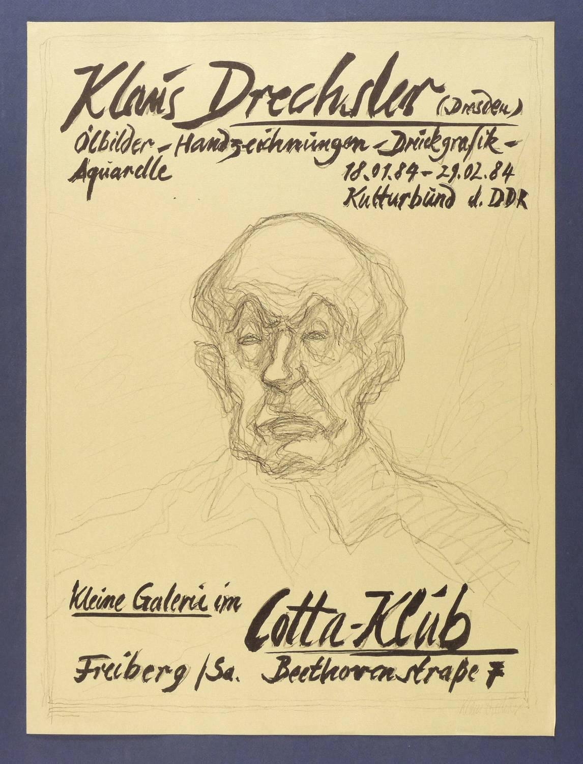 Drechsler, Klaus. – Ausstellungsplakat Kleine Galerie im Cotta-Klub Freiberg. – „Alter Mann”.