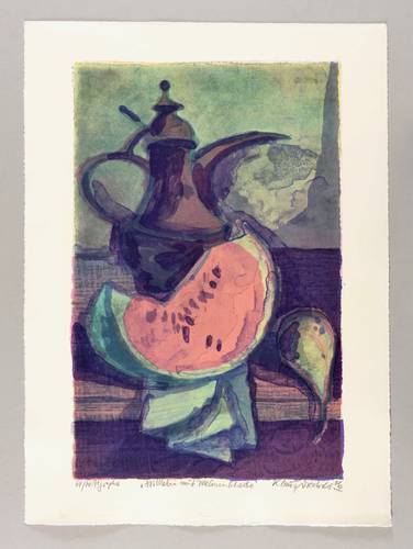 Rechts unten in Bleistift signiert und datiert. Links Auflagenbezeichnung, mittig Titel. Am Blattrand unten mittig Trockenstempel der Grafikpresse. Wasserzeichen. – Sehr guter Zustand.