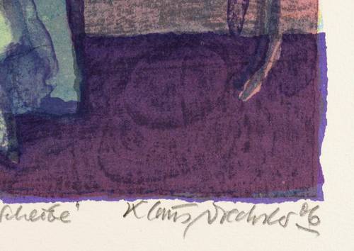 2006. Farbalgrafie, in 5 Farben, auf schwerem hellchamois Hahnemühle-Bütten. – Originale Künstlergrafik, von Klaus Drechsler. – Auflage Exemplar Nr. 64/70. – 45,1 x 29,2 cm (Darstellung), 54 x 39 cm (Blatt).