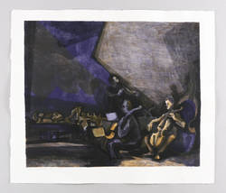 1983. Farblithografie / Pinsellithografie, in 5 Farben, auf kräftigem hellchamois Hahnemühle. – Originale Künstlergrafik, von Klaus Drechsler. – Vorzugsdruck Exemplar Nr. 1/5. – 45,1 x 53,8 cm (Darstellung / Druckbild), 54 x 63 cm (Blatt).