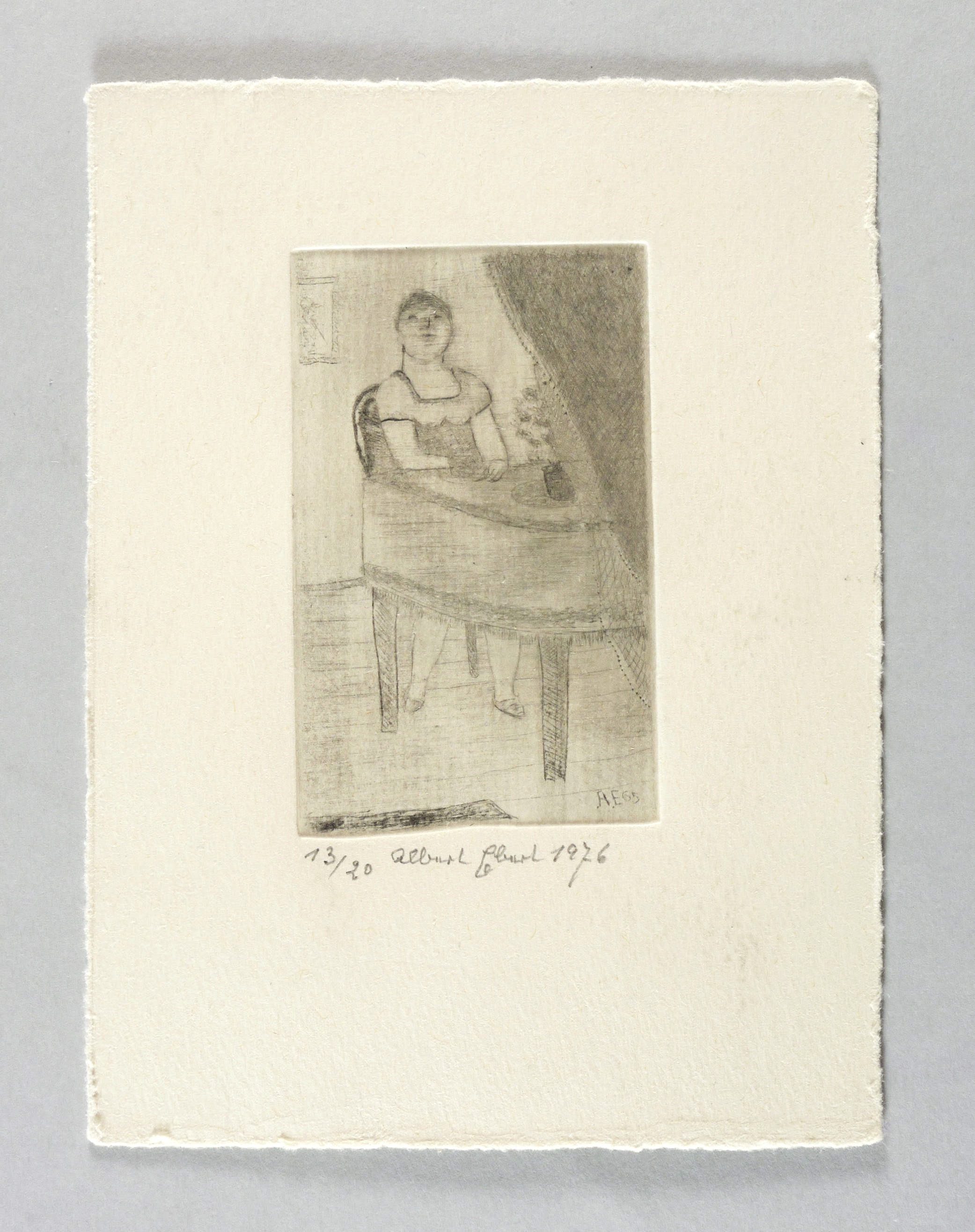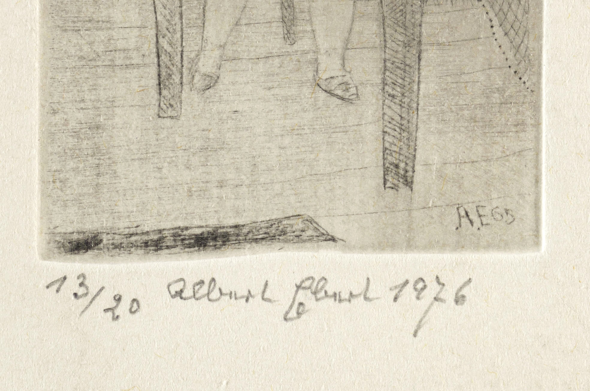 Brade-Stula R 44. – Rechts unten in Bleistift signiert und datiert: ″Albert Ebert 1976″. Rechts eigenhändige Auflagenbezeichnung. In der Platte rechts unten Monogramm und Jahr: ″AE 65″. – Provenienz: Sammlung Gottfried Müller (1921- 2013). 1974-2011 Inhaber der Evangelischen Buchhandlung und Antiquariat Max Müller in Chemnitz (Karl-Marx-Stadt). – Tadellos. Ohne Mängel. Sehr guter Zustand.