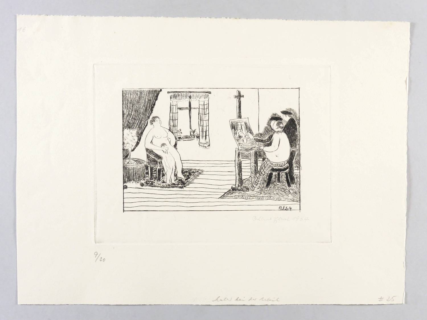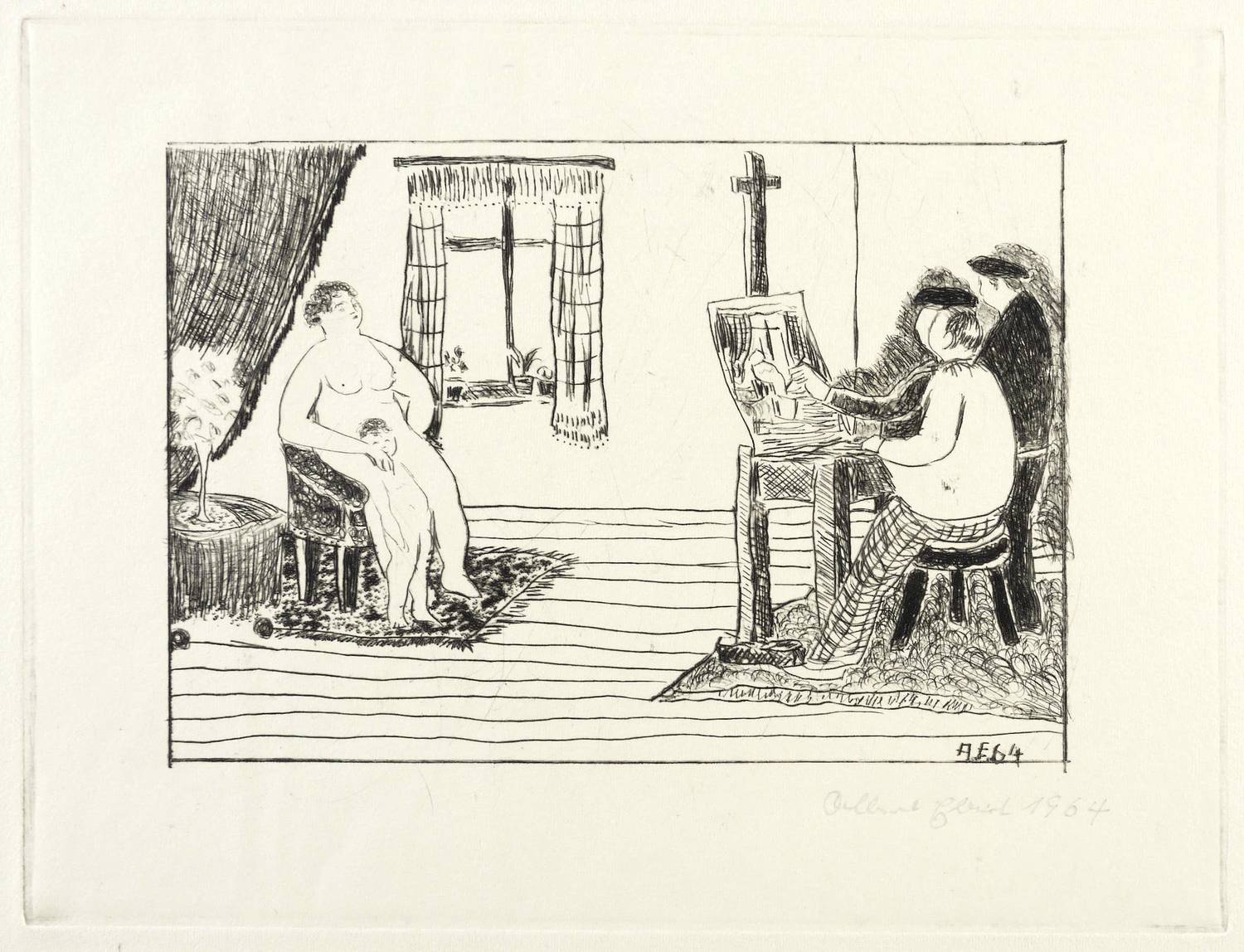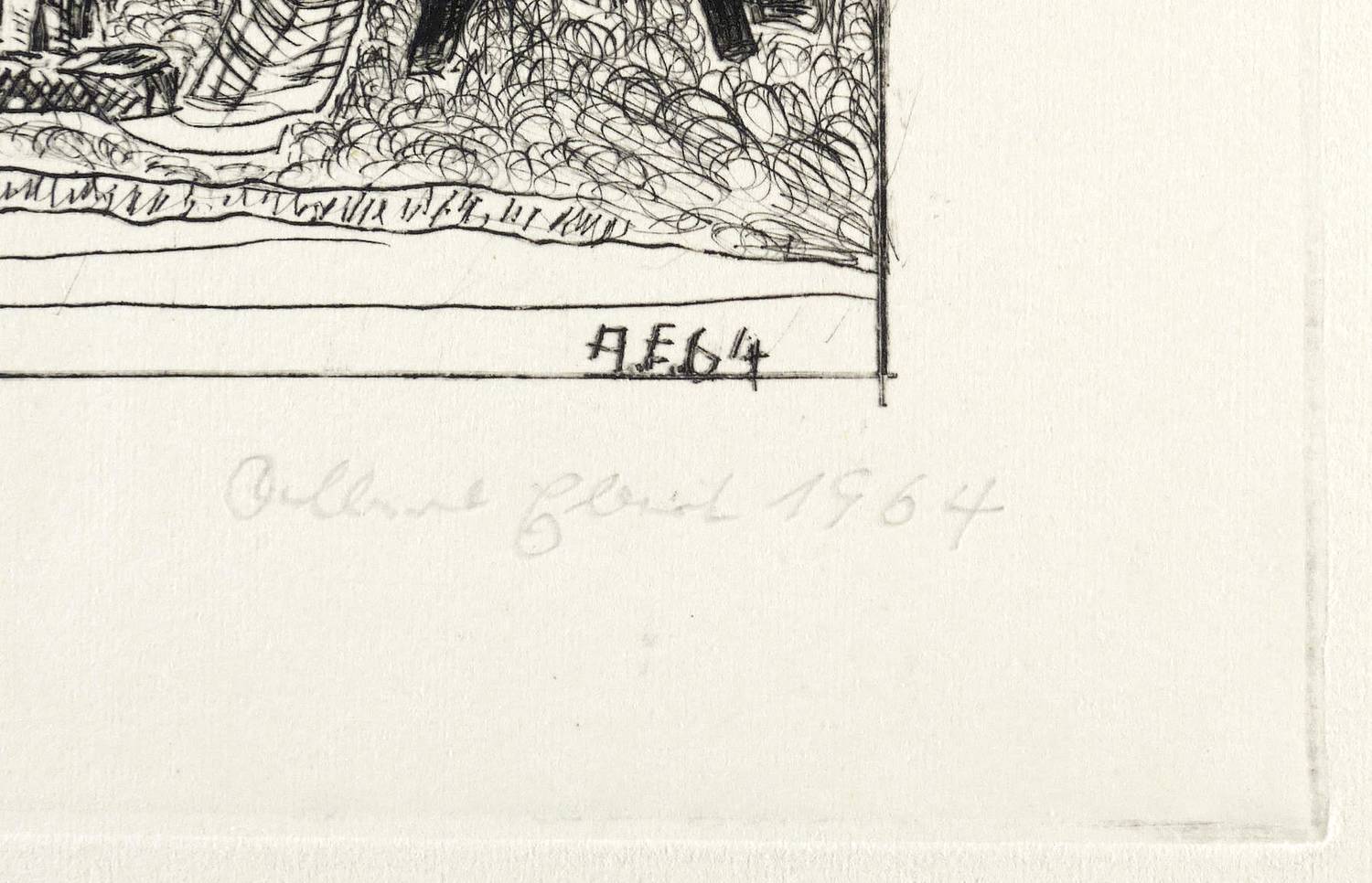 1964. Radierung / Kaltnadel, in Schwarz, auf leichtem hellgelbem Velin. – Originale Künstlergrafik, von Albert Ebert. – Auflage Exemplar Nr. 9/20. – 11,6 x 16,7 cm (Darstellung / Einfassungslinie), 16,9 x 22,4 cm (Platte), 27 x 37 cm (Blatt).