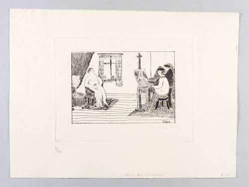 Brade-Stula R 11. – In der Platte rechts unten in Bleistift signiert und datiert: ″Albert Ebert 1964″. Links unten Auflagenbezeichnung. In der Platte rechts unten Signatur und Jahr: ″A.E. 64″. Am unteren Blattrand von fremder Hand Titel und Sammlungs-Nr. – Provenienz: Sammlung Gottfried Müller (1921- 2013). 1974-2011 Inhaber der Evangelischen Buchhandlung und Antiquariat Max Müller in Chemnitz (Karl-Marx-Stadt). – Originalrandiges Exemplar. Von frischer Wirkung. Sehr guter Zustand.