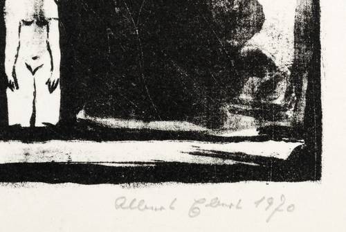 1970. Lithografie / Pinsel- & Schablithografie, in Schwarz, auf weißem Velinkarton. – Von Albert Ebert. – Auflage Exemplar Nr. 5/20. – 17,2 x 13,7 cm (Darstellung / Druckbild), 23 x 17 cm (Blatt).