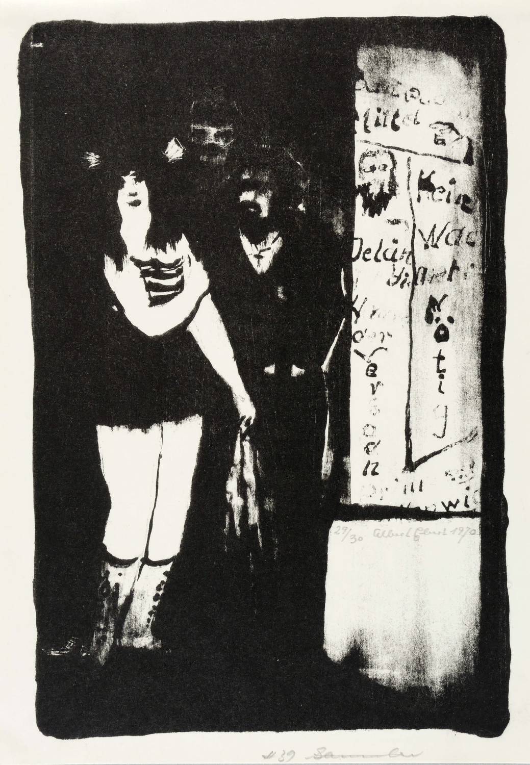1970. Lithografie / Pinsellithografie, partiell geschliffen & geschabt, in Schwarz, auf glattem Velin. – Von Albert Ebert. – Auflage Exemplar Nr. 29/30. – 21,7 x 14,7 cm (Darstellung / Druckbild), 23 x 16,5 cm (Blatt).