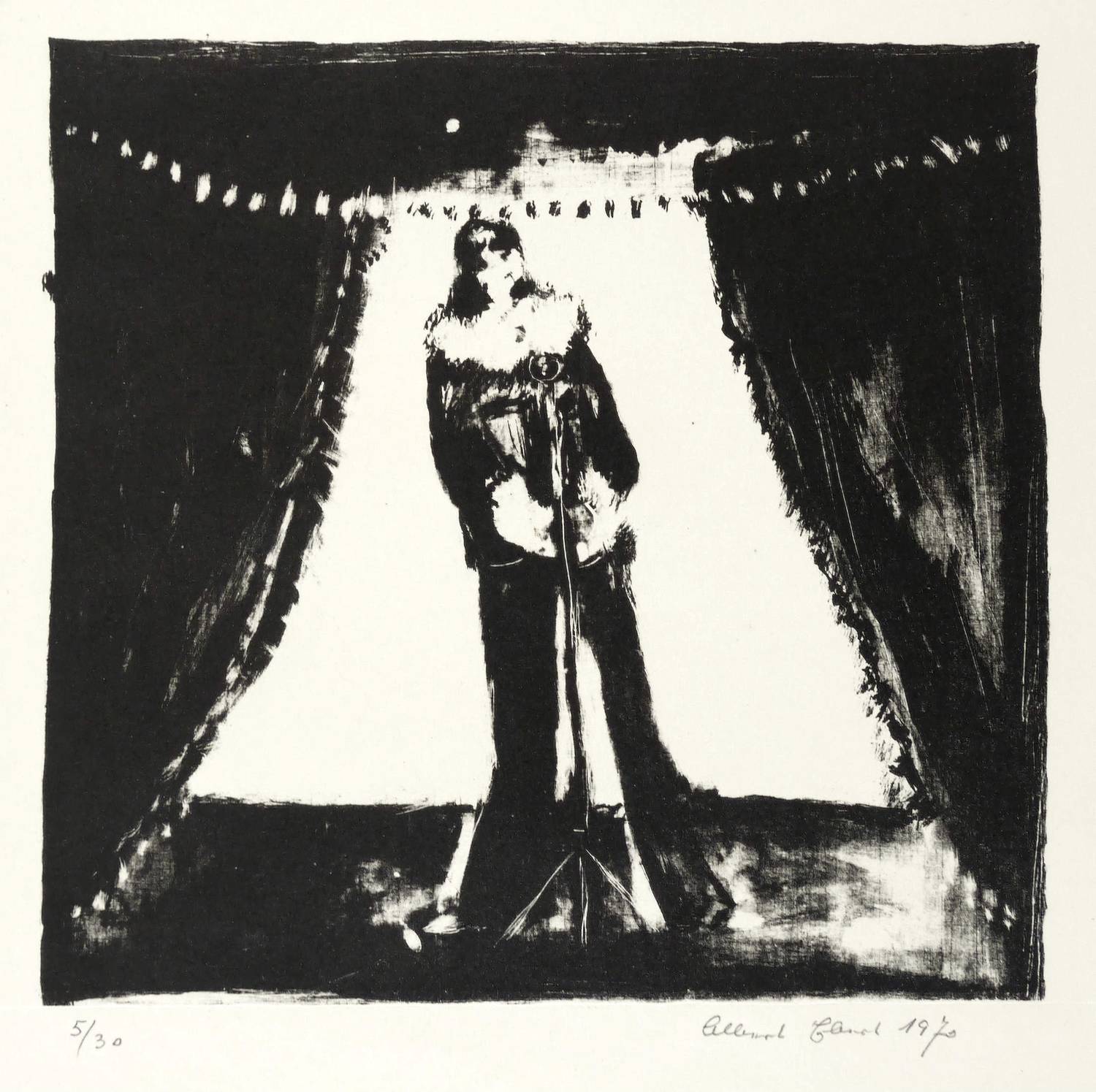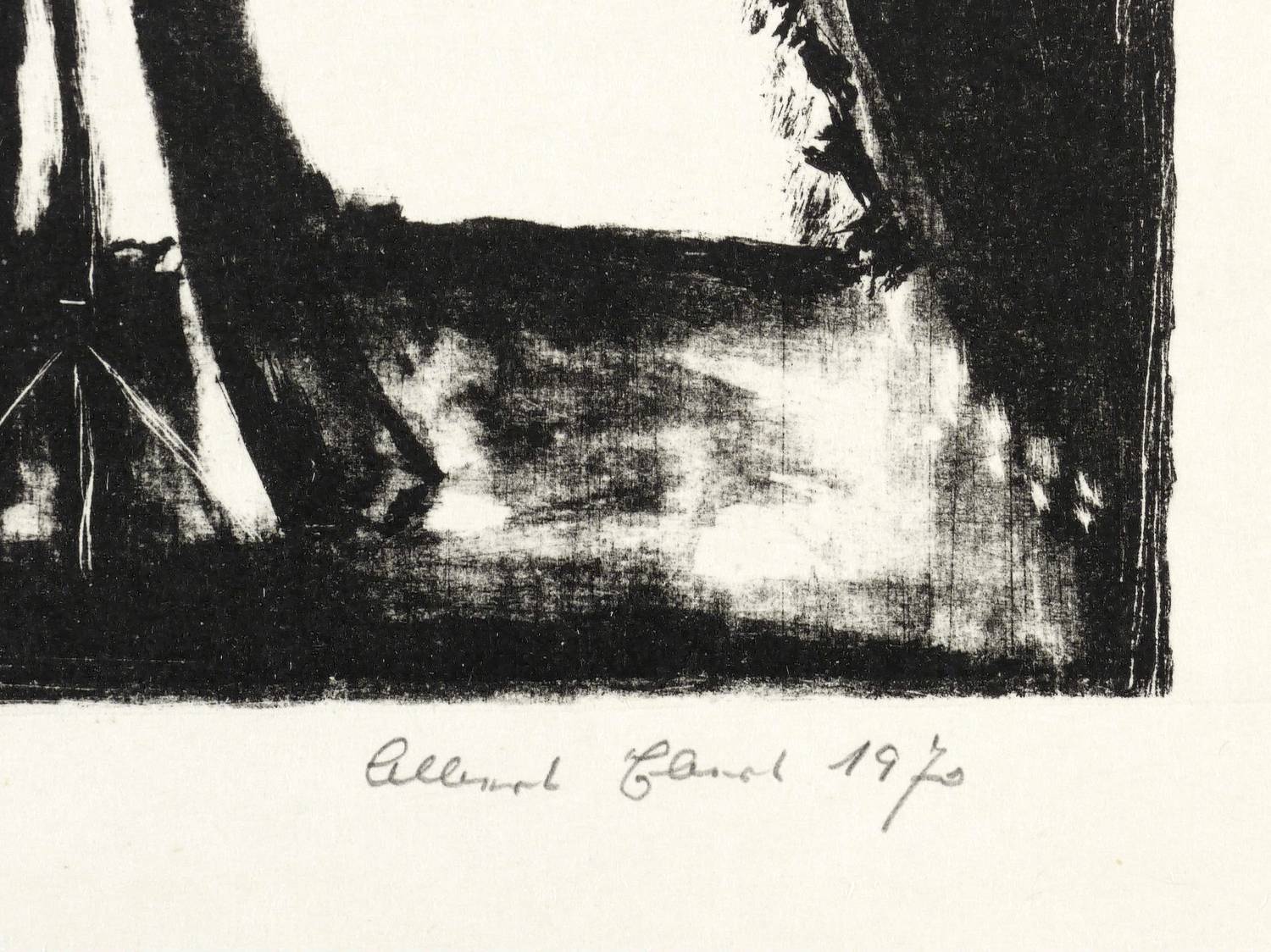 1970. Lithografie / Pinsellithografie, partiell gewischt & geschabt, in Schwarz, auf leichtem Velin. – Originale Künstlergrafik, von Albert Ebert. – Auflage Exemplar Nr. 5/30. – 13,6 x 13,9 cm (Darstellung / Druckbild), 27 x 20 cm (Blatt).