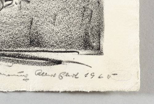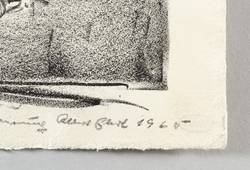 1965. Lithografie / Kreide- & Pinsellithografie, in Schwarz, auf weichem gelblichem Velin. – Originale Künstlergrafik, von Albert Ebert. – Auflage Exemplar Nr. 8/20. – 19,0 x 26,8 cm (Darstellung / Druckbild), 21 x 31 cm (Blatt).