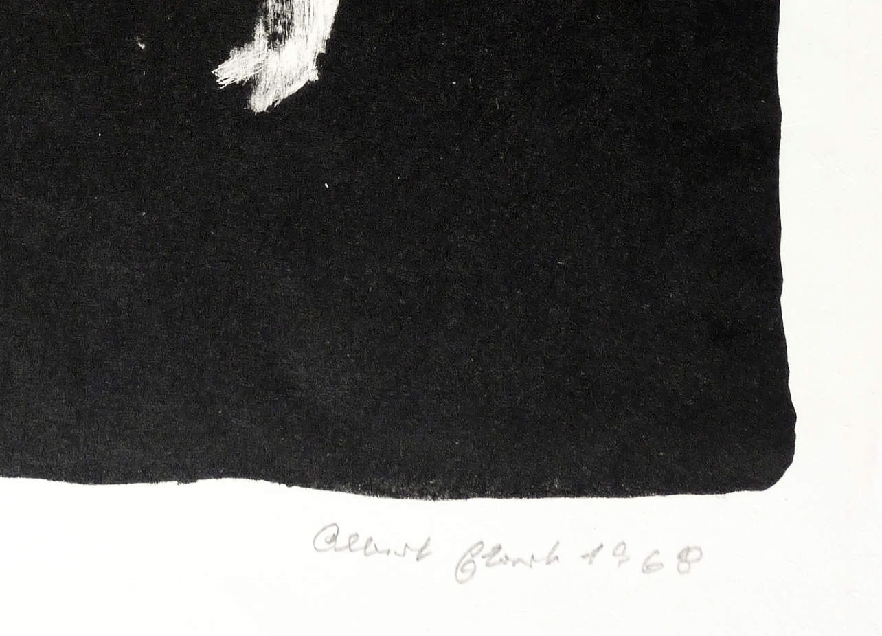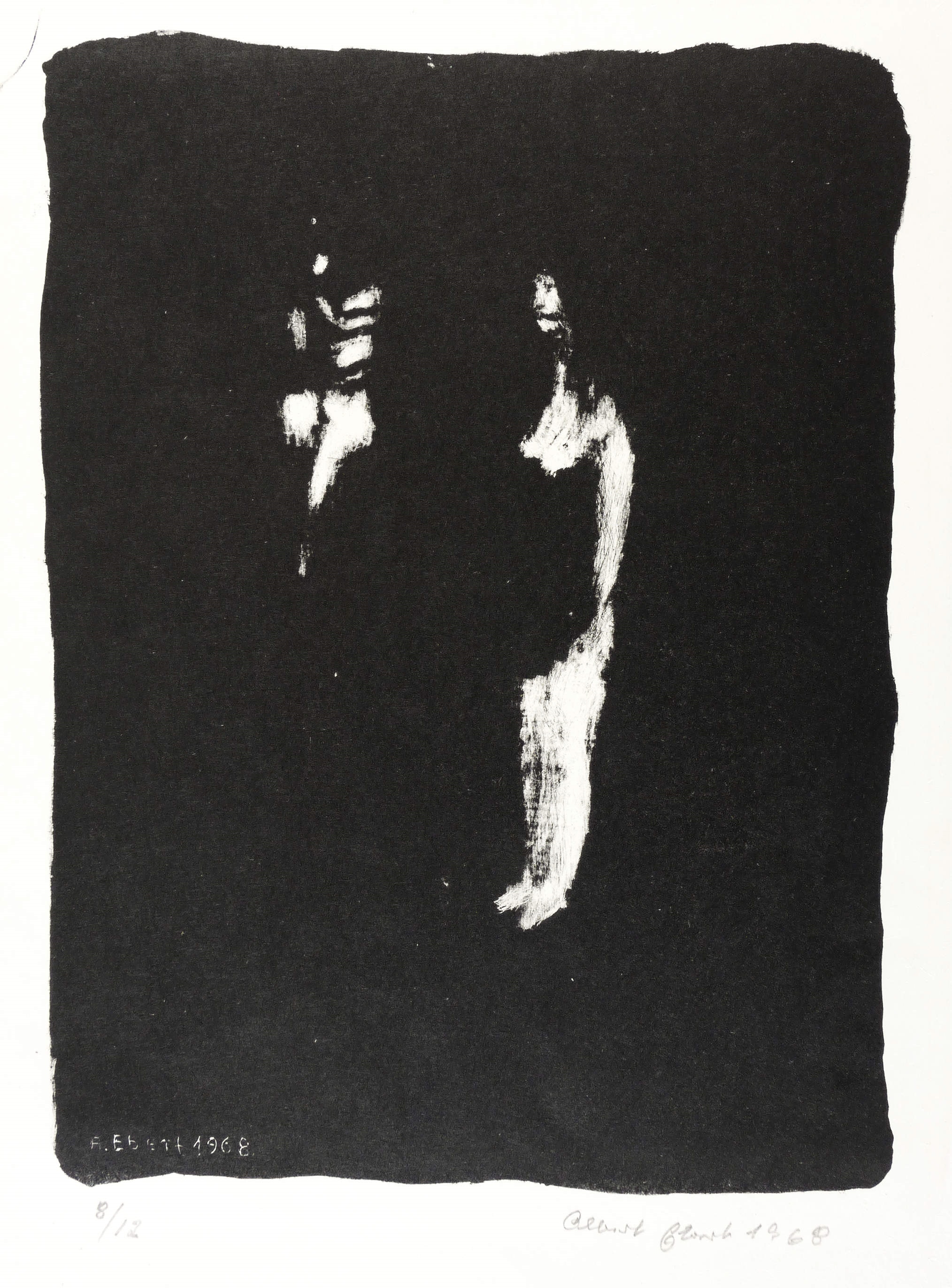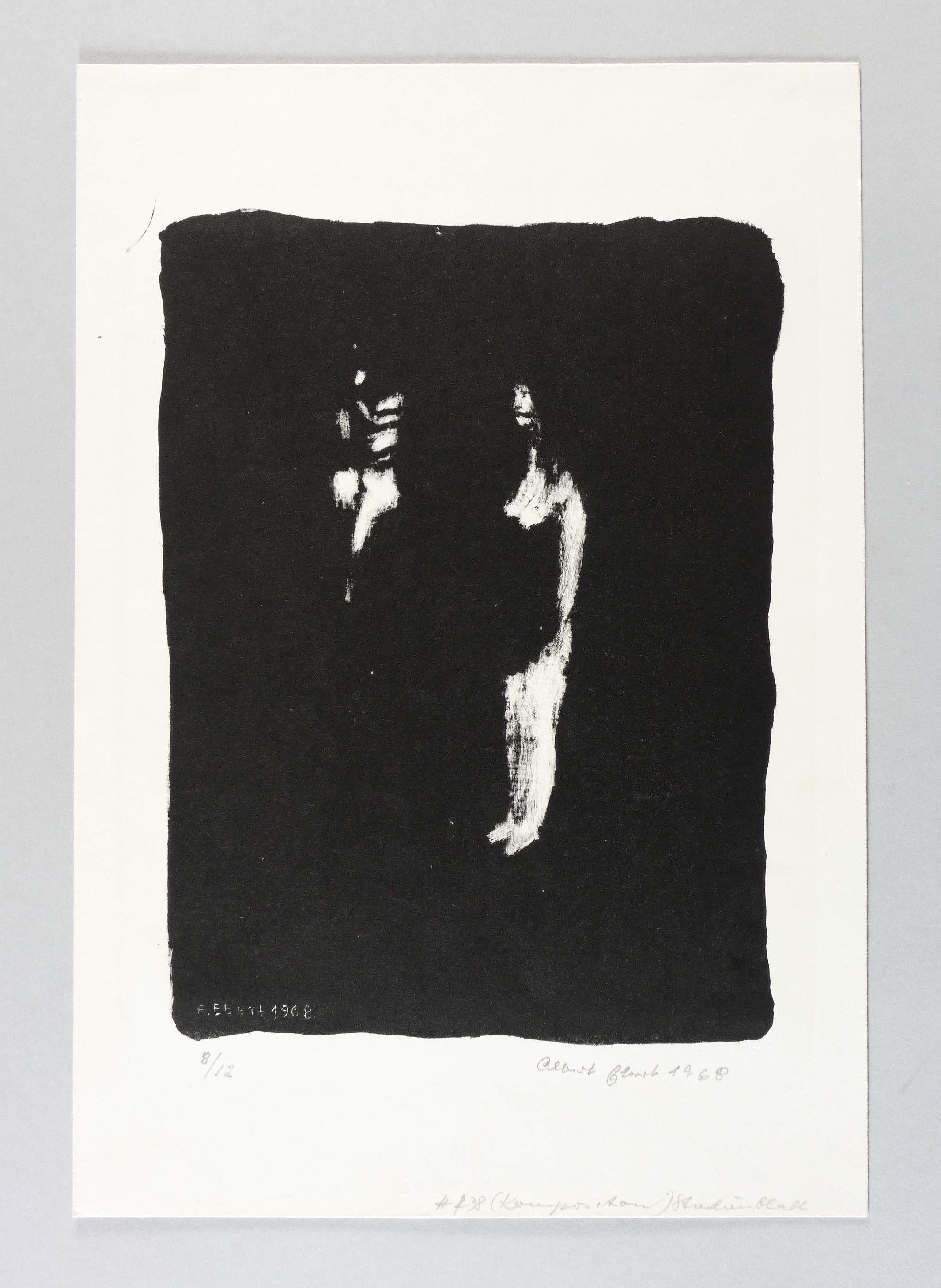 1968. Lithografie / Pinsel- & Schablithografie, in Schwarz, auf gelblichem Velin. – Originale Künstlergrafik, von Albert Ebert. – Auflage Exemplar Nr. 8/12. – 22,2 x 16,6 cm (Darstellung / Druckbild), 31 x 21 cm (Blatt).