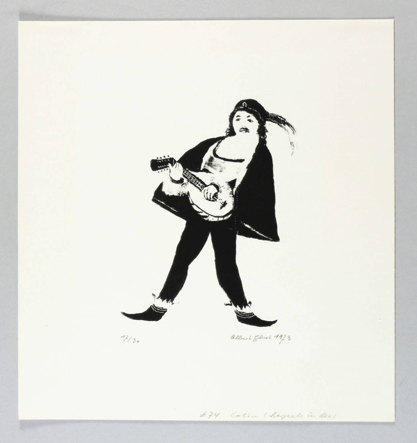 Brade-Stula L 83. – Rechts unten in Bleistift signiert und datiert: ″Albert Ebert 1973″. Links Auflagenbezeichnung. Am unteren Blattrand von fremder Hand Sammlungs-Nr. und Titel. – Zur Komödie ″Margarete in Aix″ von Peter Hacks. - Provenienz: Sammlung Gottfried Müller (1921-2013). 1974-2011 Inhaber der Evangelischen Buchhandlung und Antiquariat Max Müller in Chemnitz (Karl-Marx-Stadt). – Tadellos erhalten. Sehr guter Zustand.