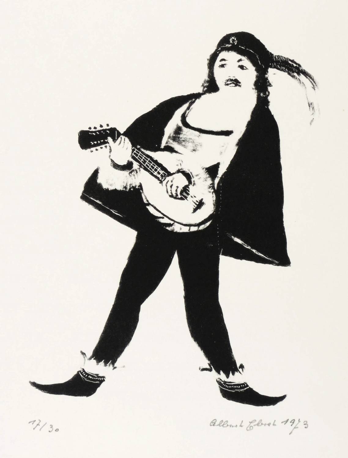1973. Lithografie / Pinsellithografie, partiell geschabt, in Schwarz, auf Velinkarton. – Originale Künstlergrafik, von Albert Ebert. – Auflage Exemplar Nr. 17/30. – 17,2 x 13,2 cm (Darstellung / Druckbild), 30 x 29 cm (Blatt).