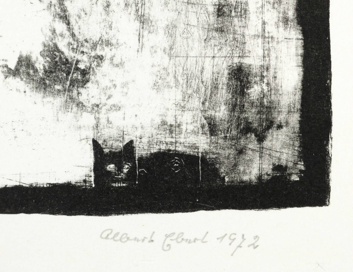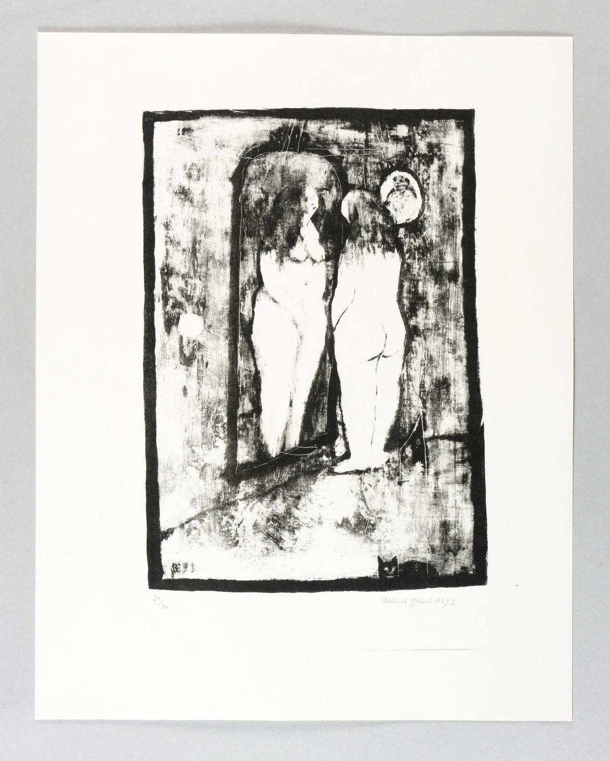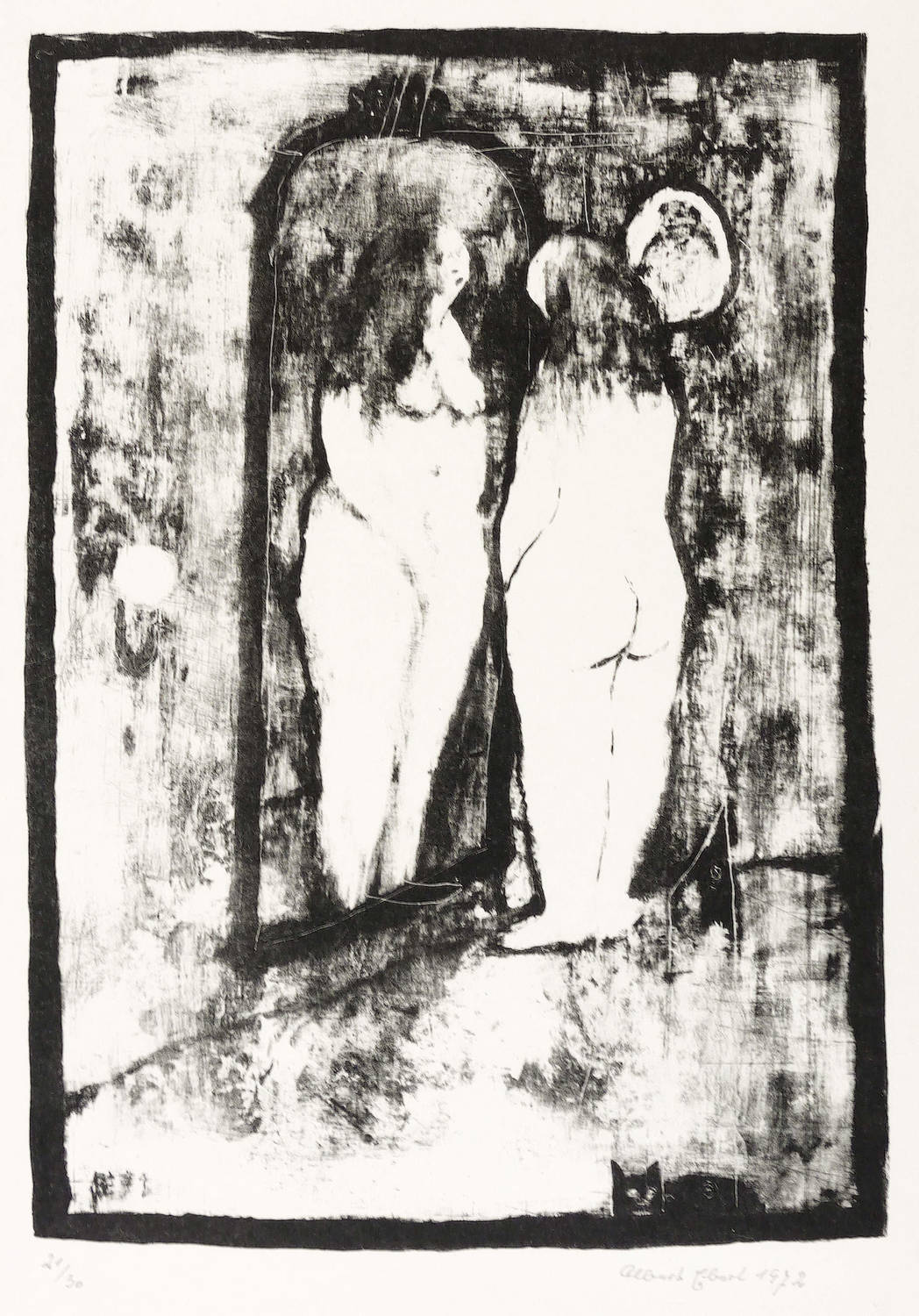 1971/1972. Lithografie / Pinsellithografie, partiell gewischt & geschabt, in Schwarz, auf Velinkarton. – Von Albert Ebert. – Auflage Exemplar Nr. 21/30. – 24,5 x 17,2 cm (Darstellung / Druckbild), 35 x 27 cm (Blatt).